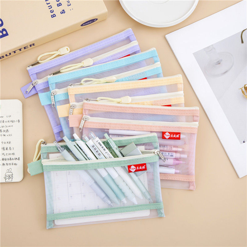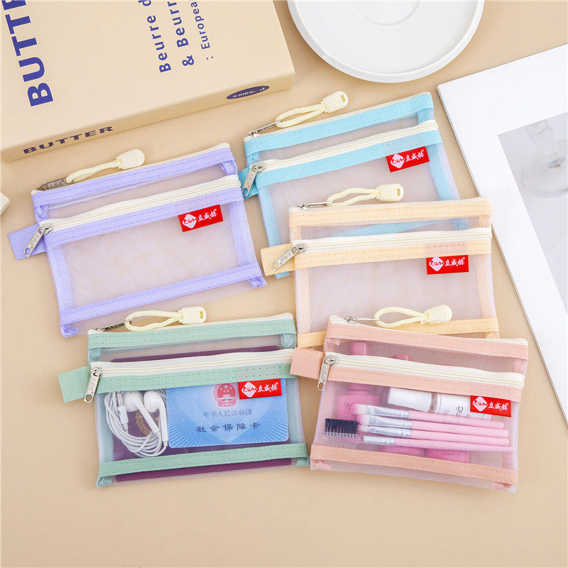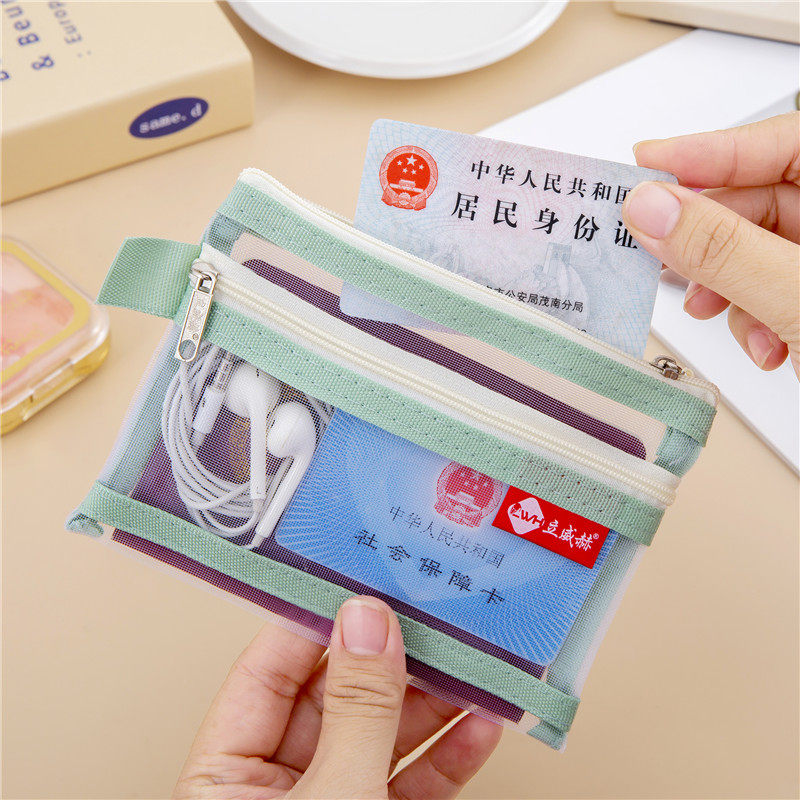 A6透明网纱文件袋户口本护照外出收纳包银行卡驾驶证袋口红化妆包B8迷你收纳袋双层拉链袋小证件袋网格零钱袋