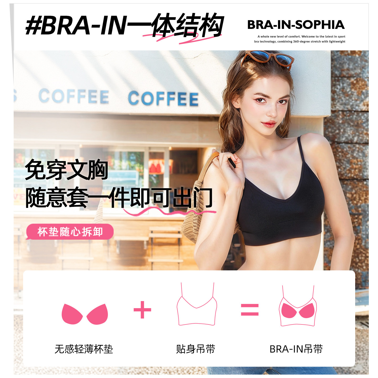 大U露背,吊带bra一体式,舒适可内搭可外穿