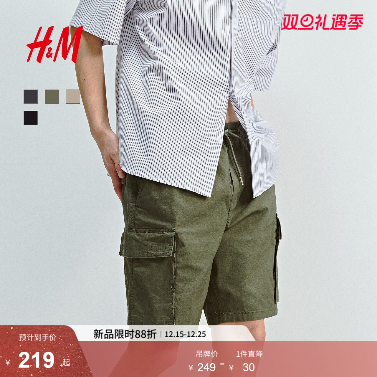 HM男装休闲裤2025冬新款商务松紧腰直筒宽松美式工装短裤1273190