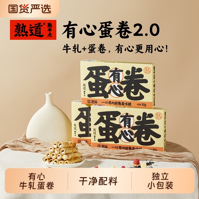 熟道有心牛轧注心鸡蛋卷酥3盒装营养早餐追剧下午茶网红零食