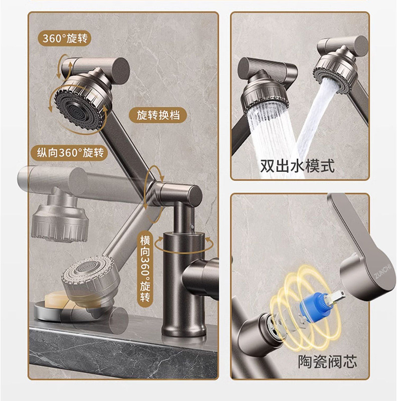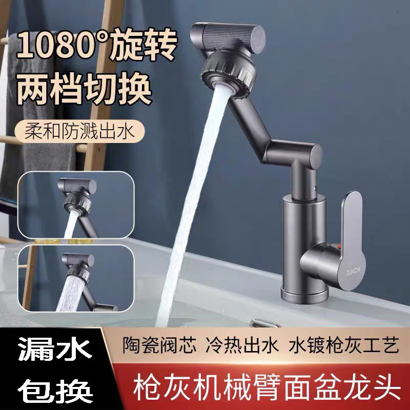 面盆招财猫机械臂水龙头万向厨房冷热浴室卫生间家用旋转龙头花洒