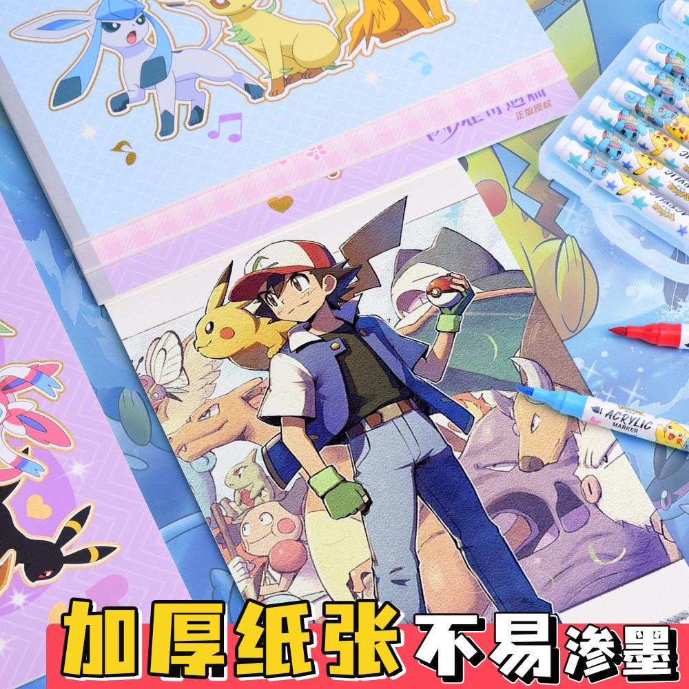 正版宝可梦画画本小学生专用儿童a4图画本美术本皮卡丘速写绘画素描本空白画画涂色涂鸦绘本小朋友手绘本批发