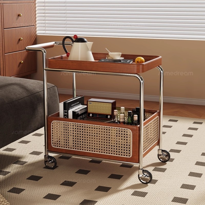 可移动边几小推车茶几客厅家用沙发边柜中古实木小桌子置物架零食
