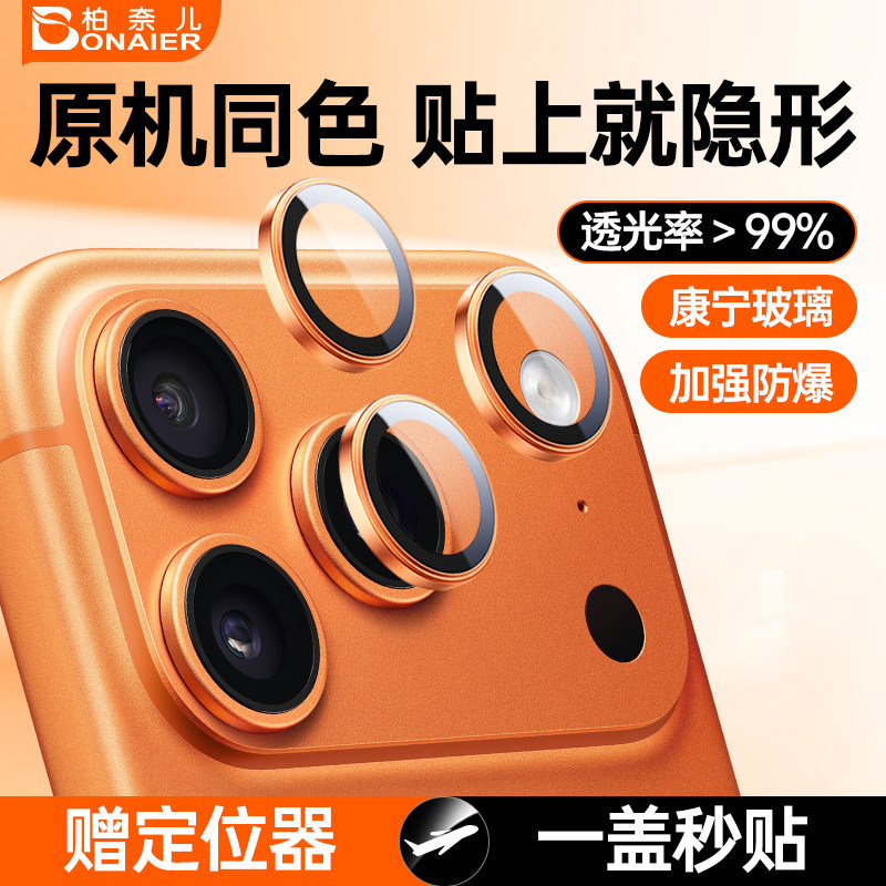 【AR增透 赠镜头底座贴】柏奈儿适用苹果17ProMax全包镜头膜超高清iPhone17pro摄像头膜康宁玻璃手机保护膜