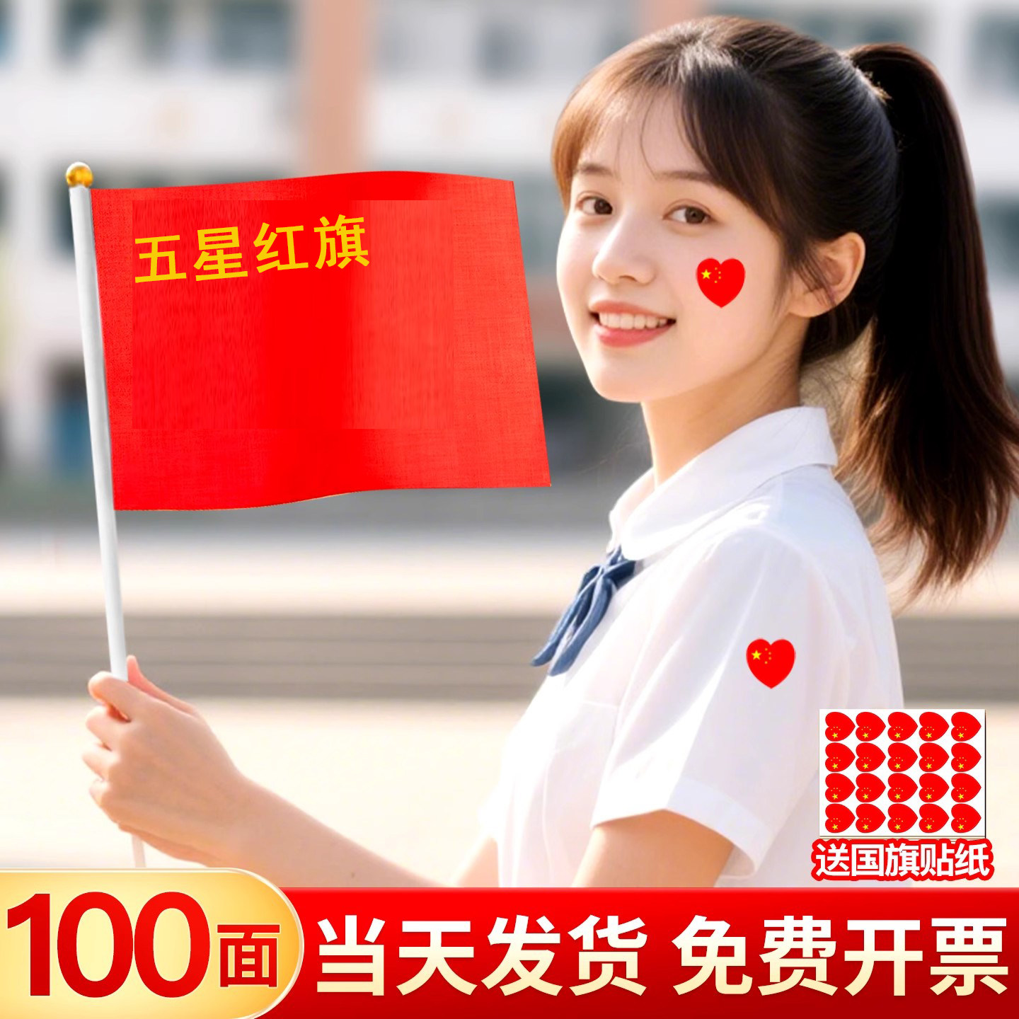 小国旗手摇红旗国旗贴纸手持表演道具8号7号小旗子户外手挥带杆高级爬山天安门儿童手拿小旗帜批发穿好杆布料