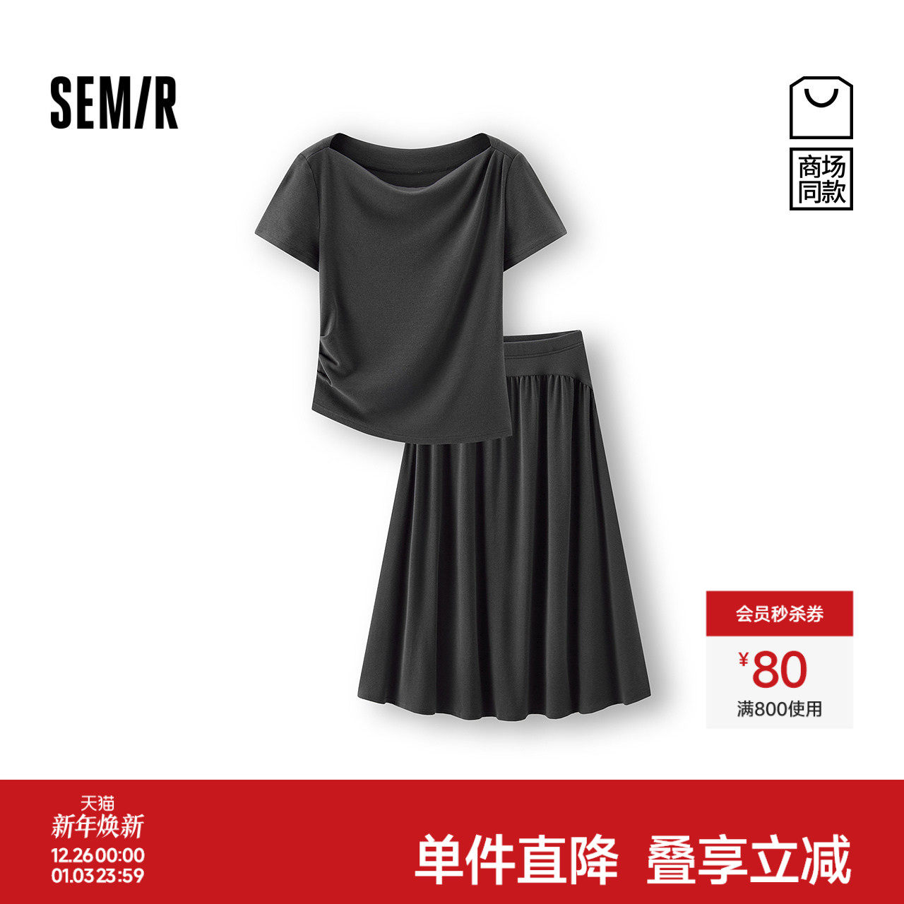 商场同款|森马套装女秋季一字领修身短上衣A字长裙2025新款两件套