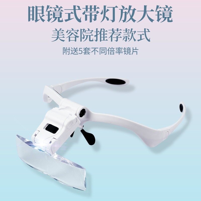 头戴式放大镜带灯拔黑头眼镜美容挤痘粉刺纹绣纹眉嫁接睫毛孔