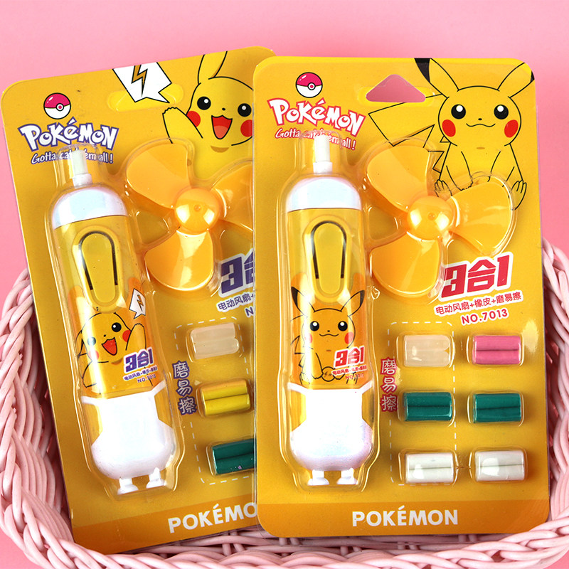 卡通皮卡丘电动橡皮檫小学生多功能自动可擦笔静音新创意电动风扇