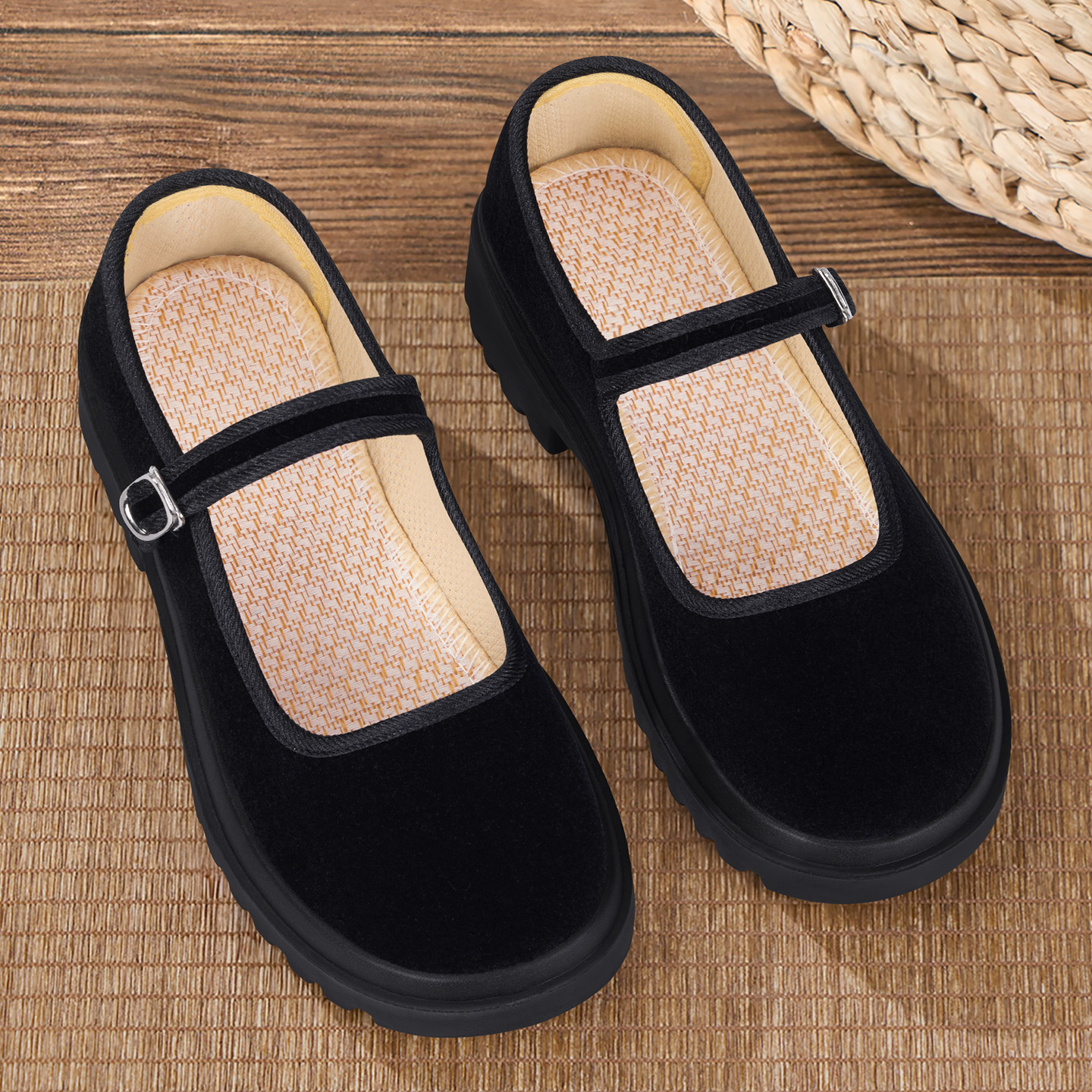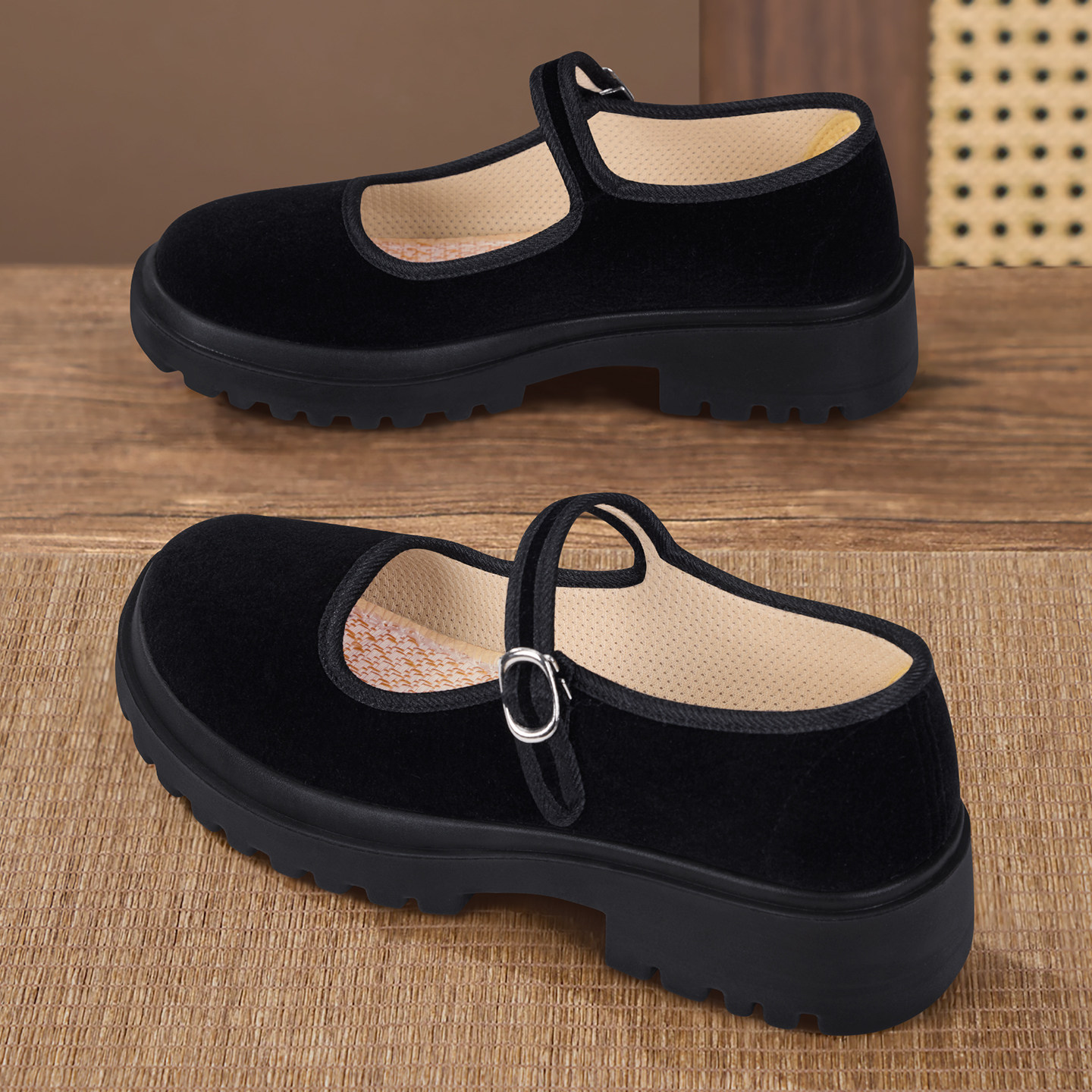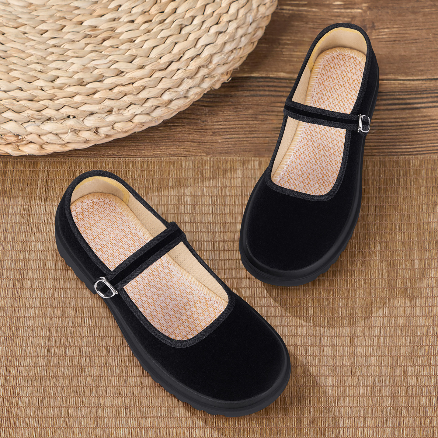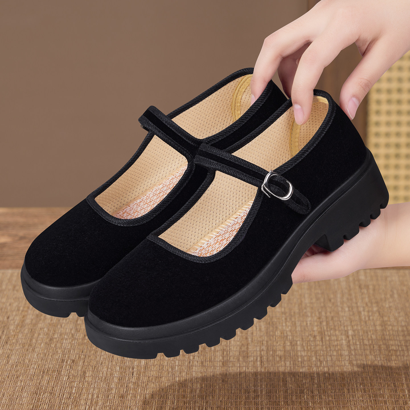 老北京布鞋女棉鞋平底单鞋防滑上班工作鞋黑色广场舞鞋妈妈鞋软底