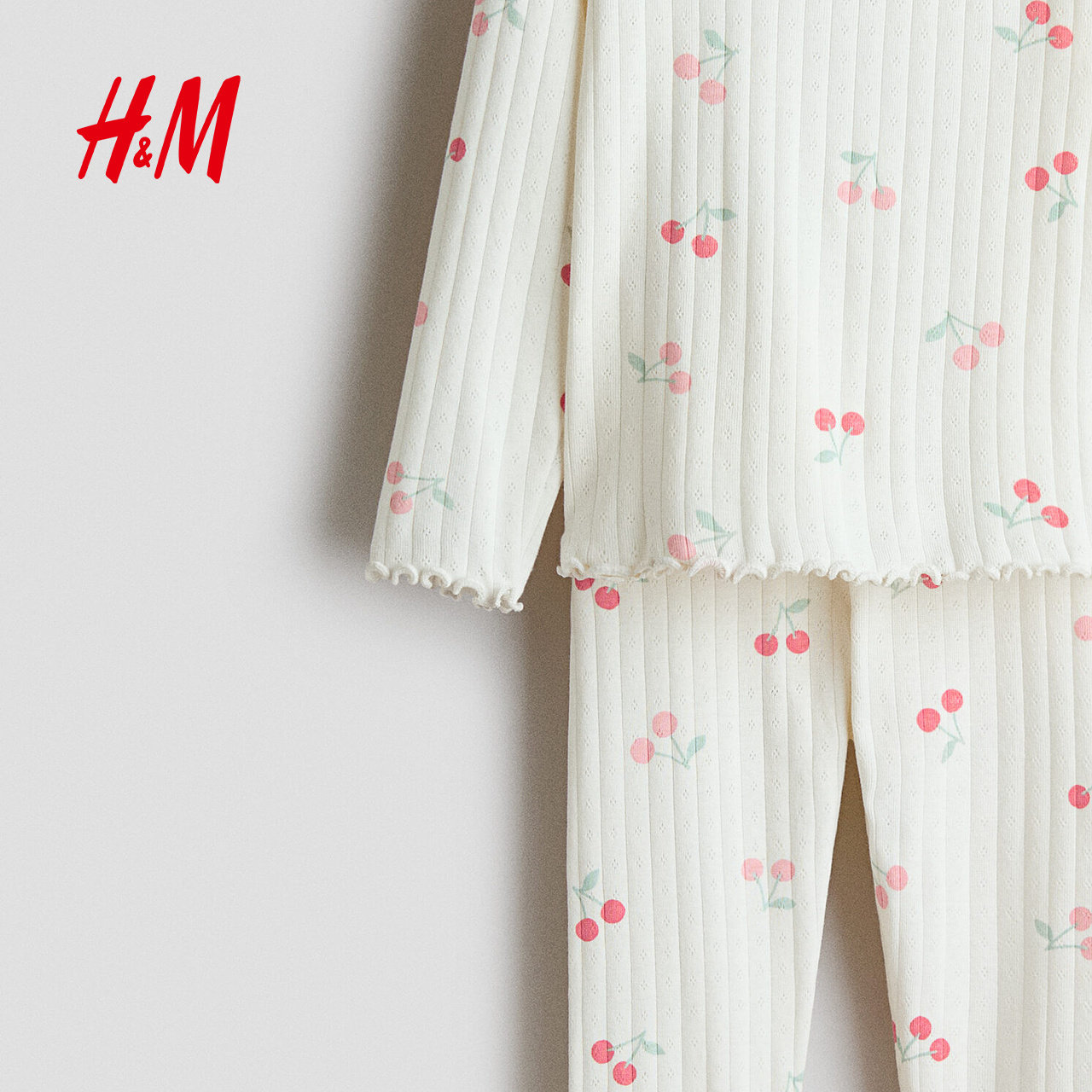HM2026春季新款童装儿童女童罗纹棉质睡衣套装1241119