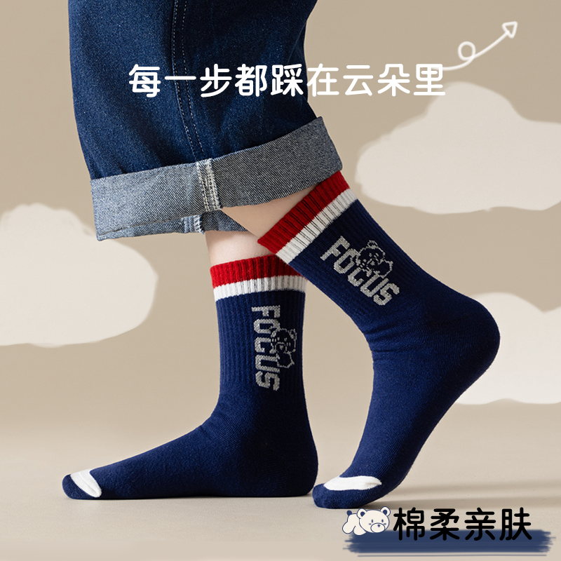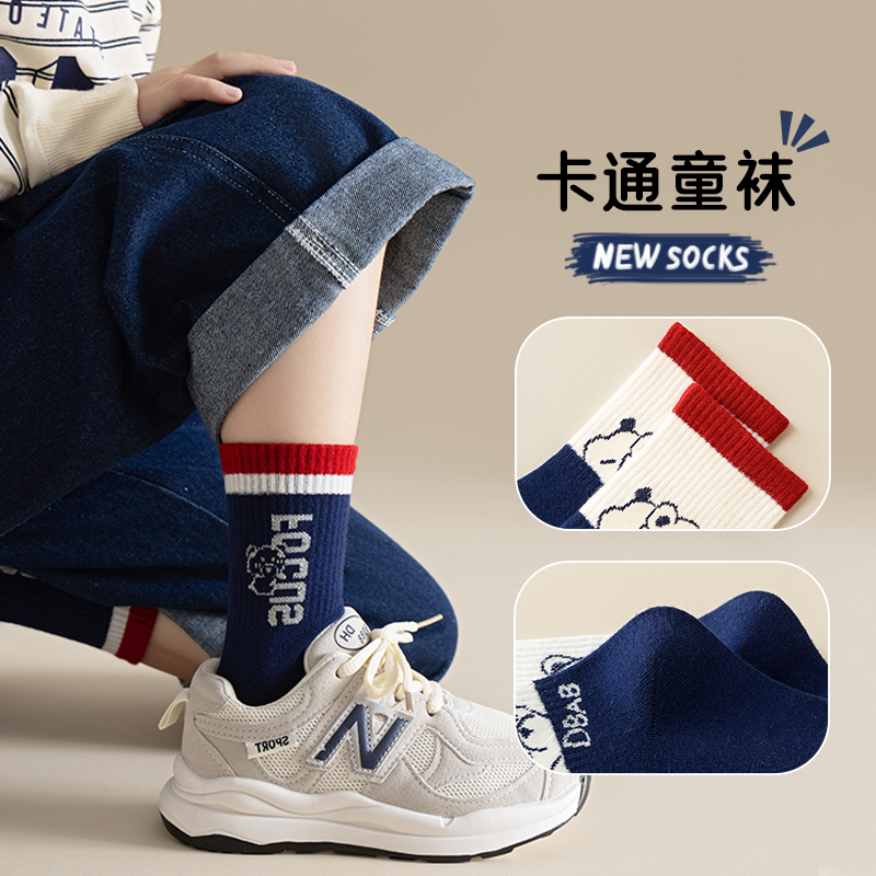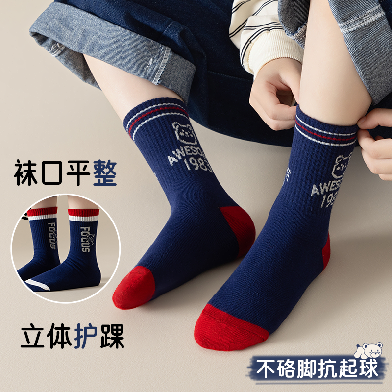 男童袜子棉袜秋冬中筒袜儿童无骨潮袜中大童青少年运动秋季童袜子