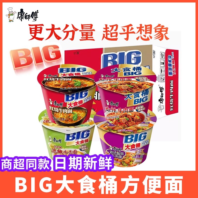 康师傅大食桶方便面泡面牛肉面big大桶装川渝泡椒烧麻辣老坛面条