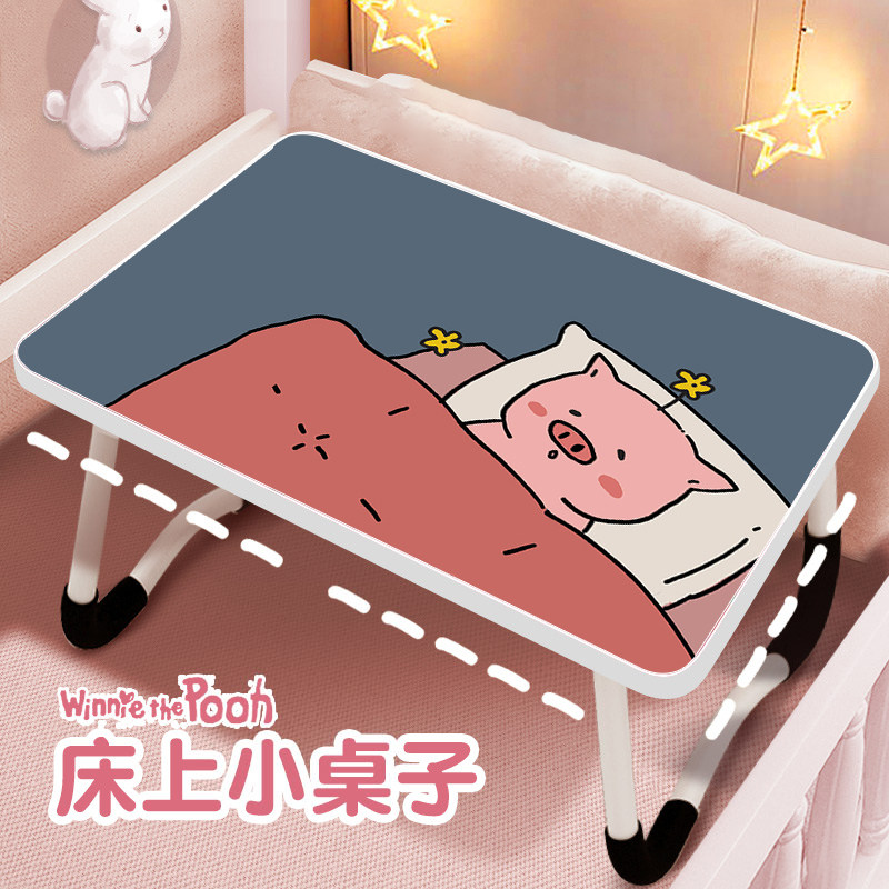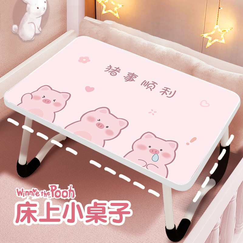 可爱粉色小猪床上小桌子可折叠学生宿舍简易家用化妆桌子卧室飘窗床上书桌学生上网课书桌懒人餐桌小桌板坐地