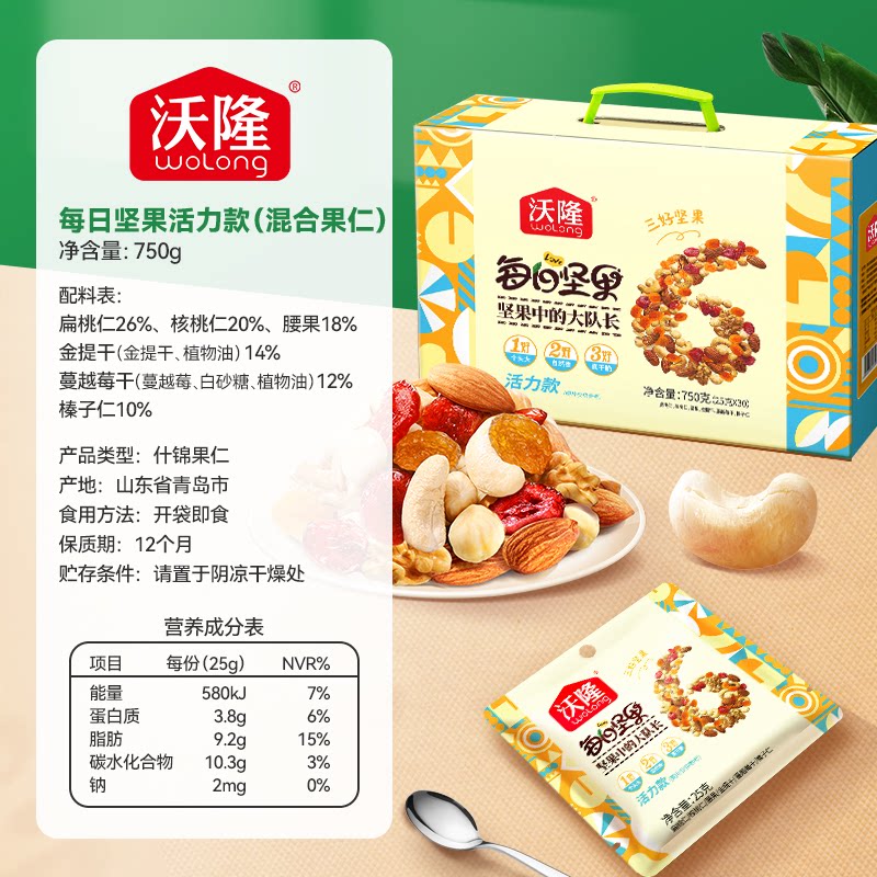 【李佳琦直播间】沃隆每日坚果活力款750g混合坚果办公零食小袋