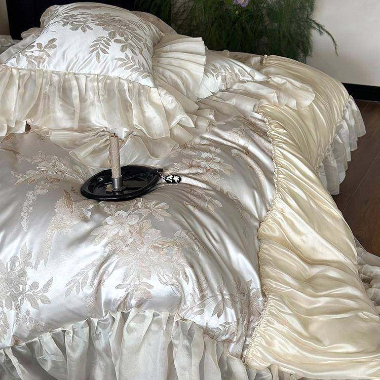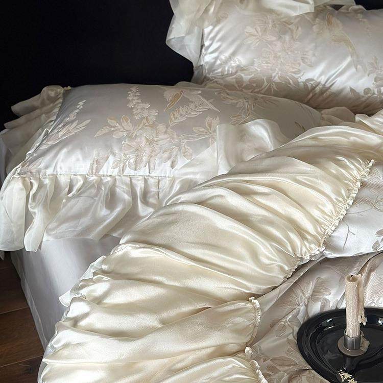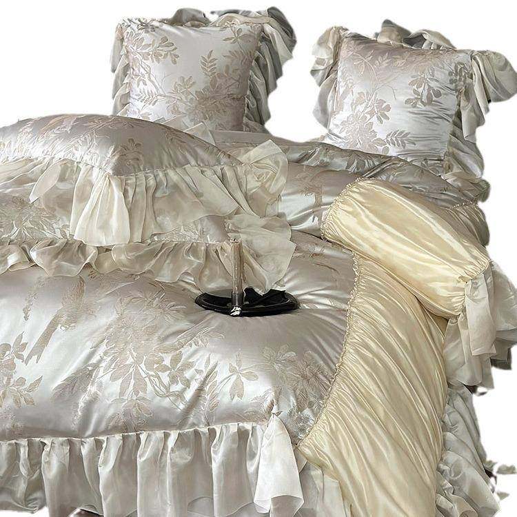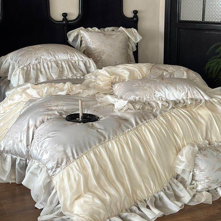 轻奢风高精密提花四件套140S长绒棉法式雪纺花边纯棉被套床上用品