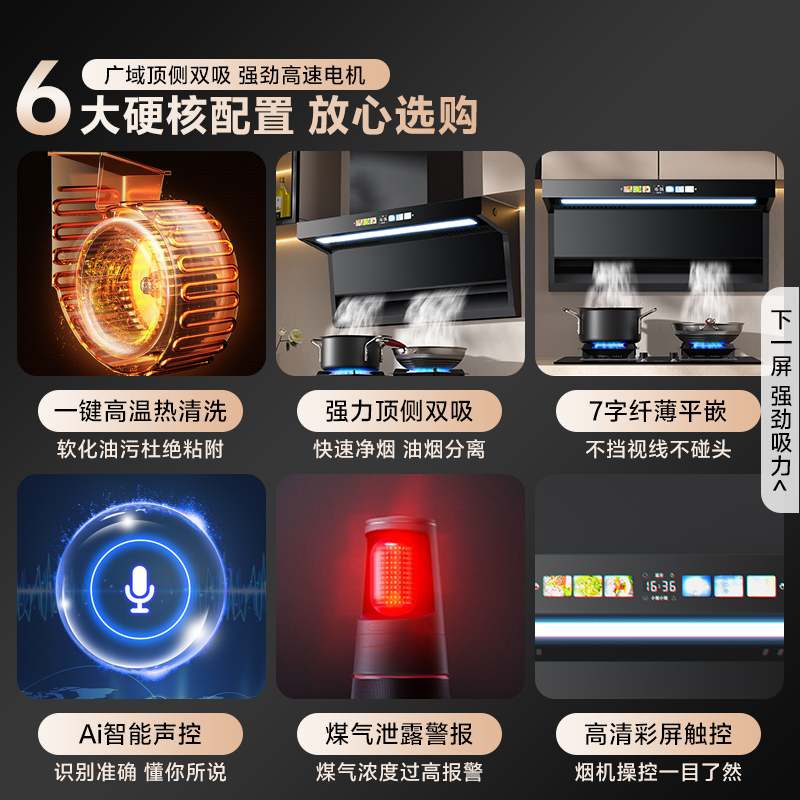新飞抽油烟机家用厨房七字机顶侧双吸自动清洗变频大吸力抽油烟机