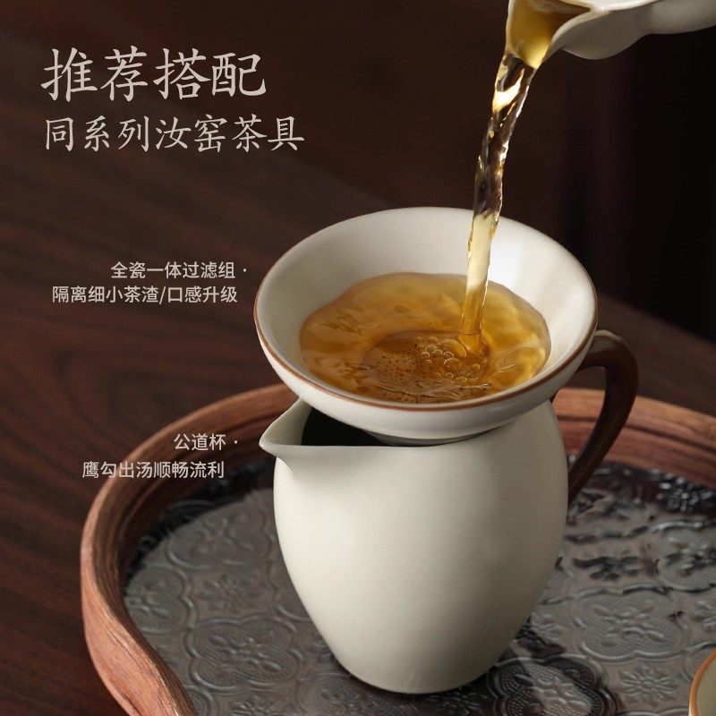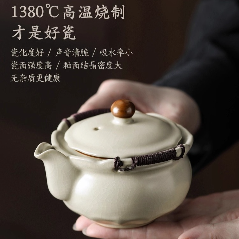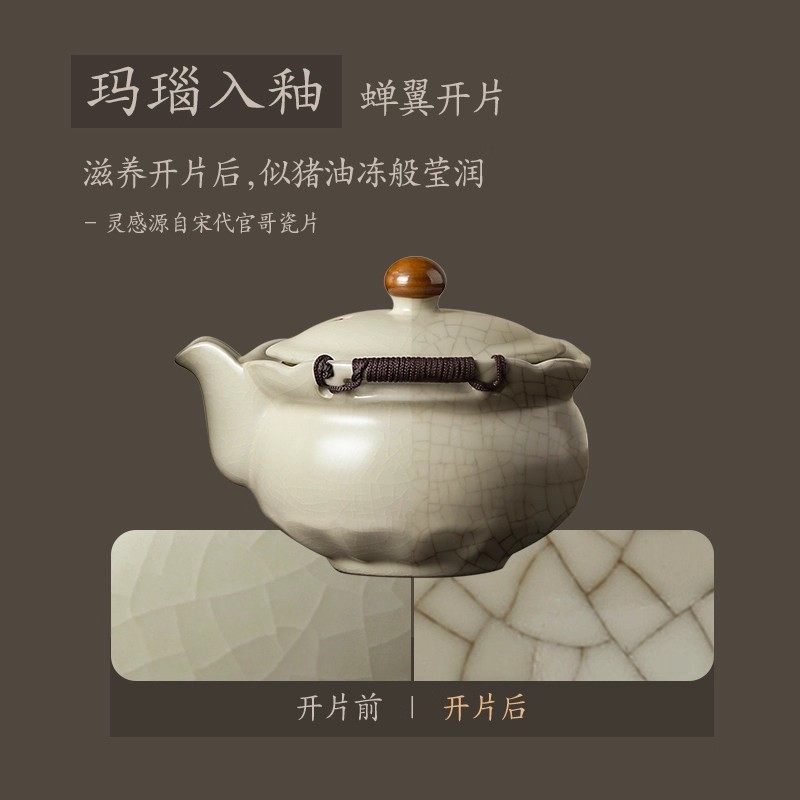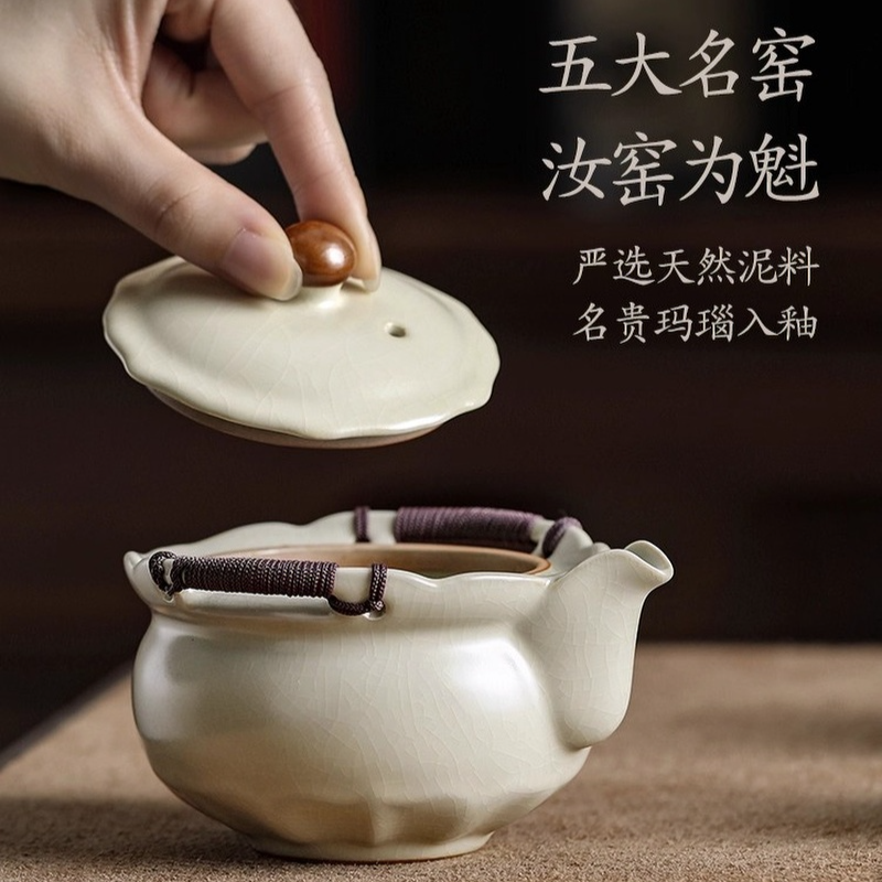 米黄汝窑盖碗茶杯单个高档泡茶壶手抓壶茶具茶碗带盖一人泡茶杯