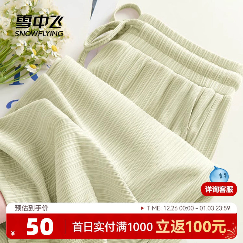 雪中飞冰丝阔腿裤女夏季2025新款凉感透气休闲裤学生轻薄直筒裤PC