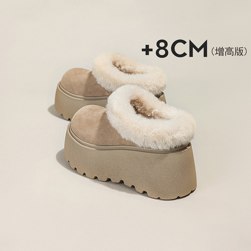 厚底增高8cm包头半拖鞋女2025冬加绒毛口胖头鱼保暖懒人棉鞋大头