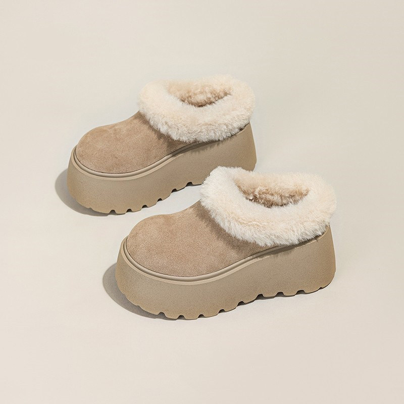 低帮厚底雪地靴女2025新款冬季懒人一脚蹬毛毛棉鞋加绒加厚女鞋子