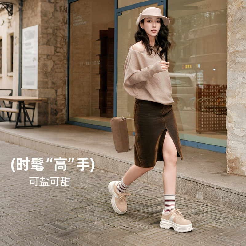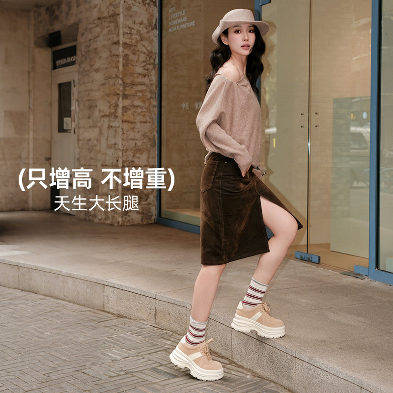 【明星同款】Wander around 复古棕色厚底增高休闲板鞋男女同款