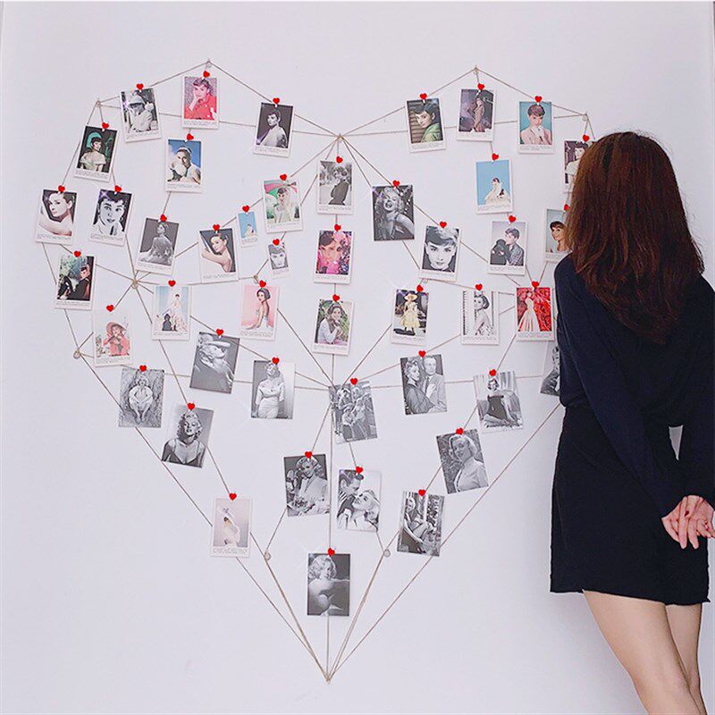 diy麻绳夹子照片墙现代简约悬挂D墙饰壁饰客厅卧室宿舍爱心夹子