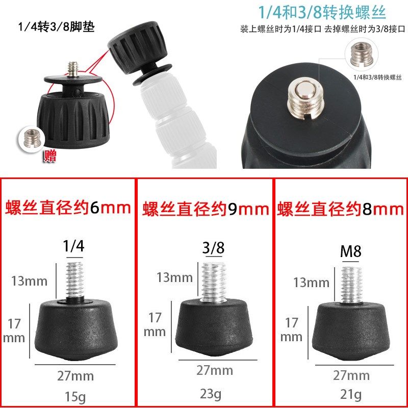 3/8 M8 1/4独脚架不锈钢脚钉登山杖三脚架配件防滑脚垫加长脚钉