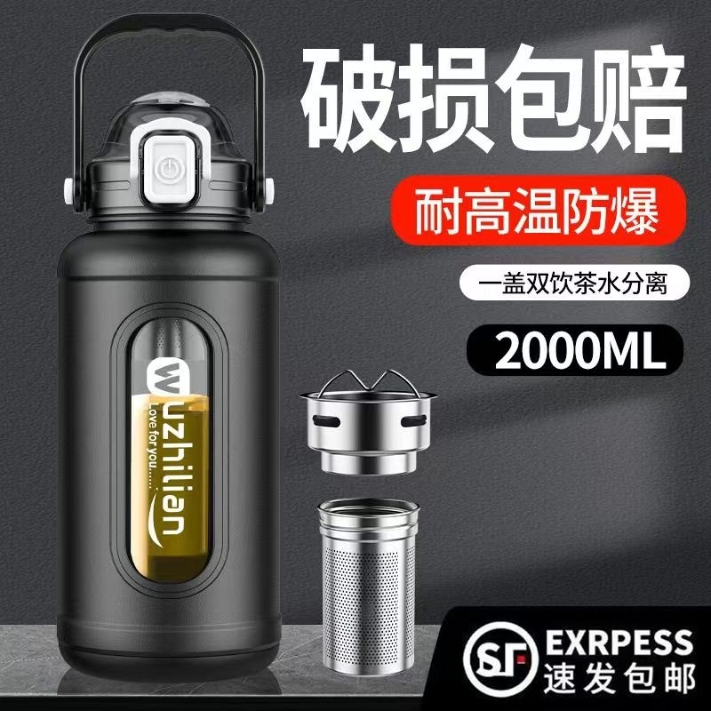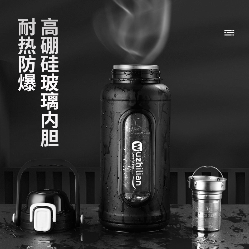 大容量玻璃水杯防爆耐高温茶水分离男运动防摔泡茶杯子高硼硅单层