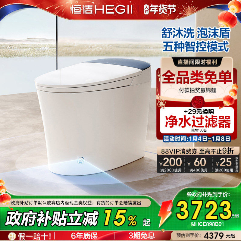 恒洁智能马桶坐便器家用一体式舒沐洗家族脚感冲水家用小户型