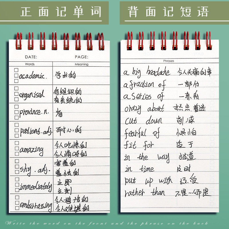 三年二班方形英语单词本艾宾浩斯记忆曲线大学生考研专用四六级日皮面笔记本子高颜值初高中词汇学习记背神器