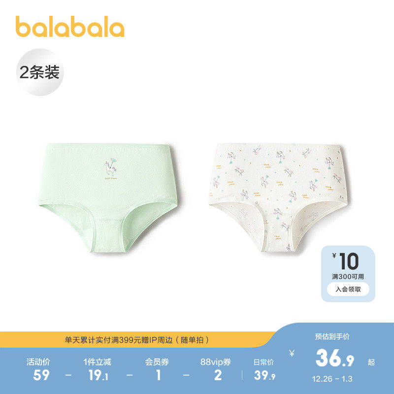 【商场同款】巴拉巴拉女童内裤棉儿童三角短裤不夹PP抗菌裆两条装