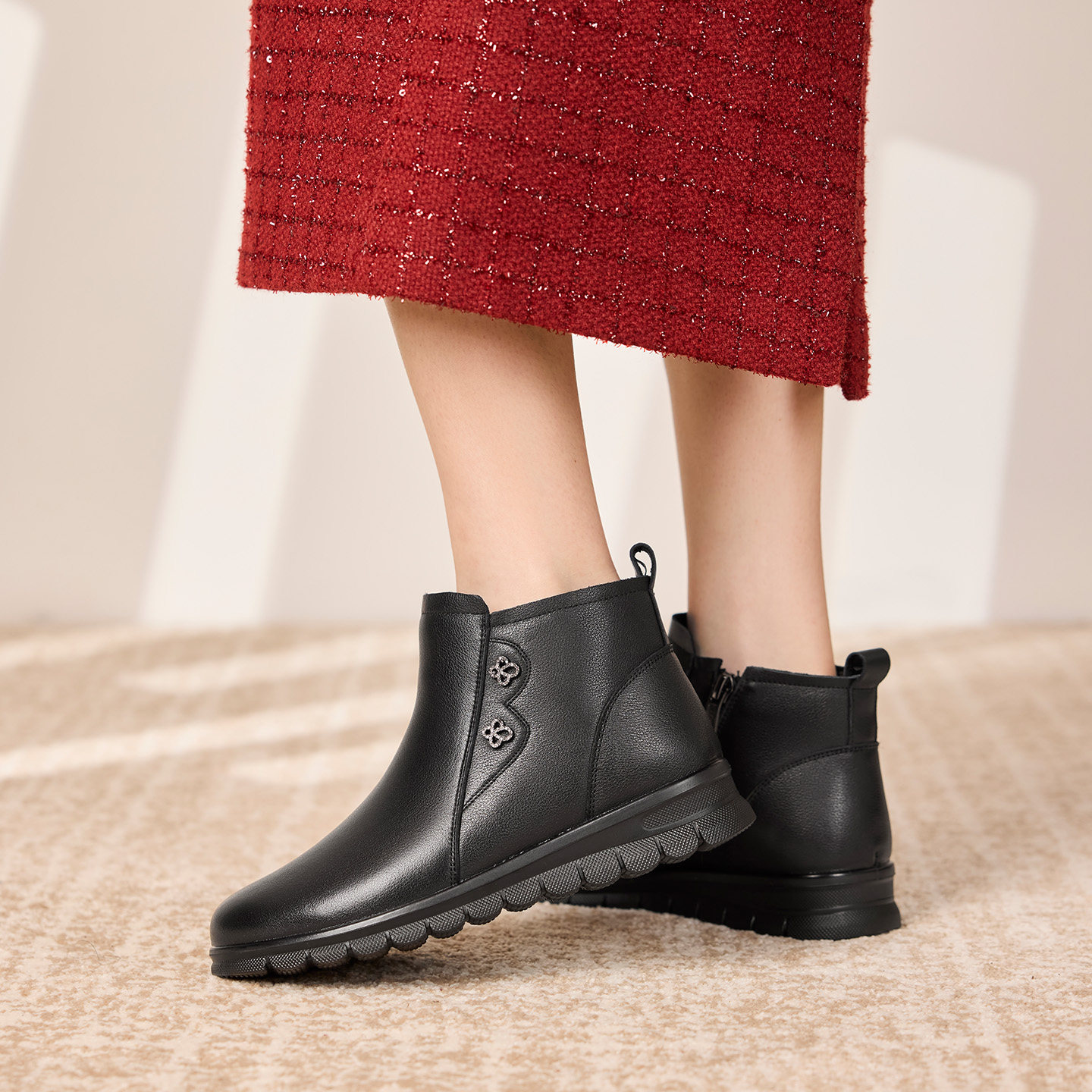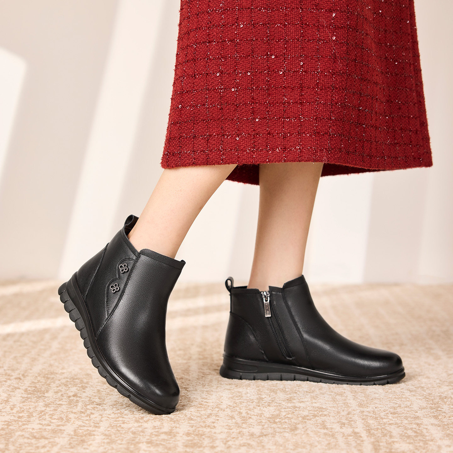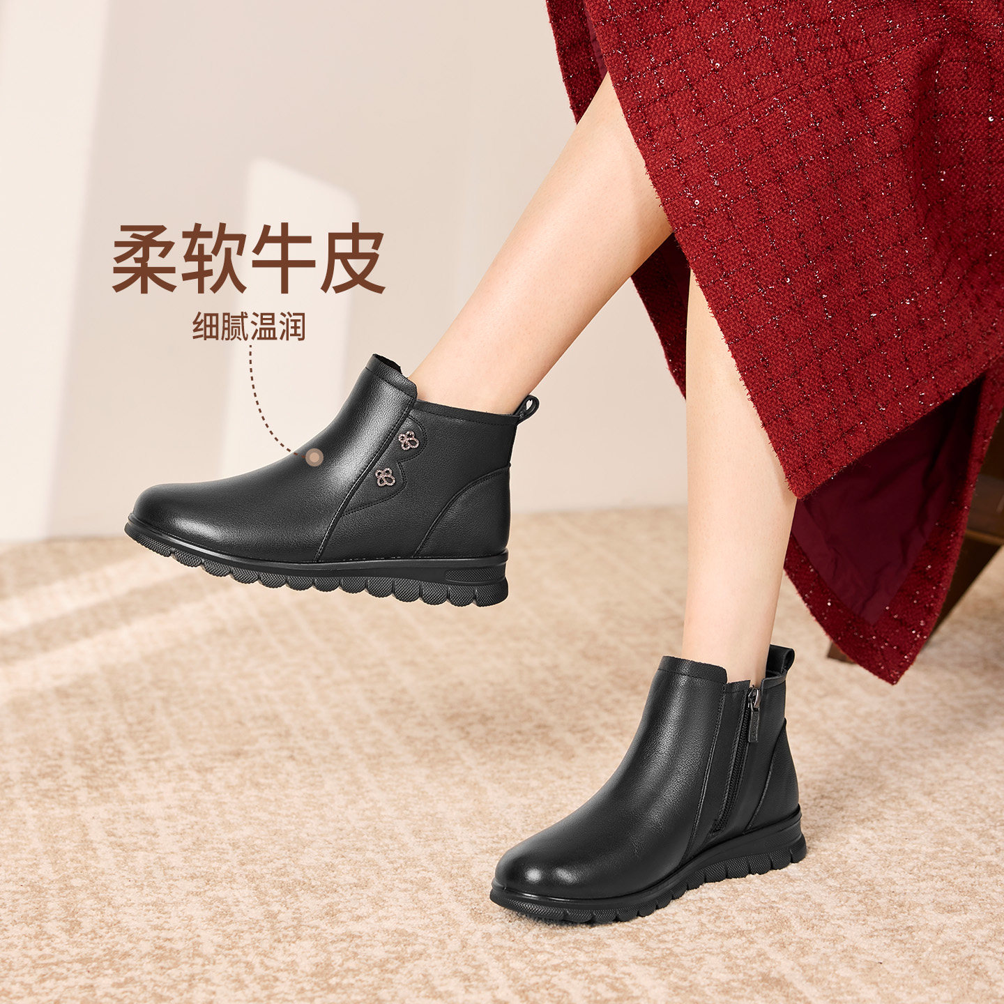 奥康 女鞋2025冬季妈妈棉鞋真皮加绒防滑中老年人短靴门店发货