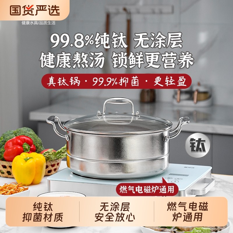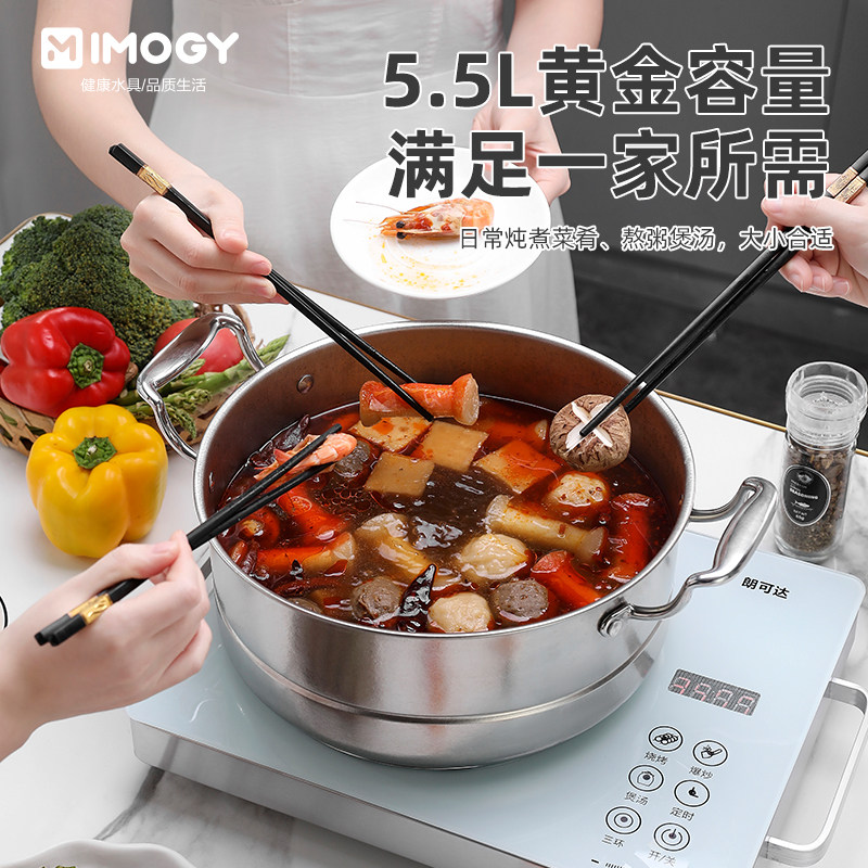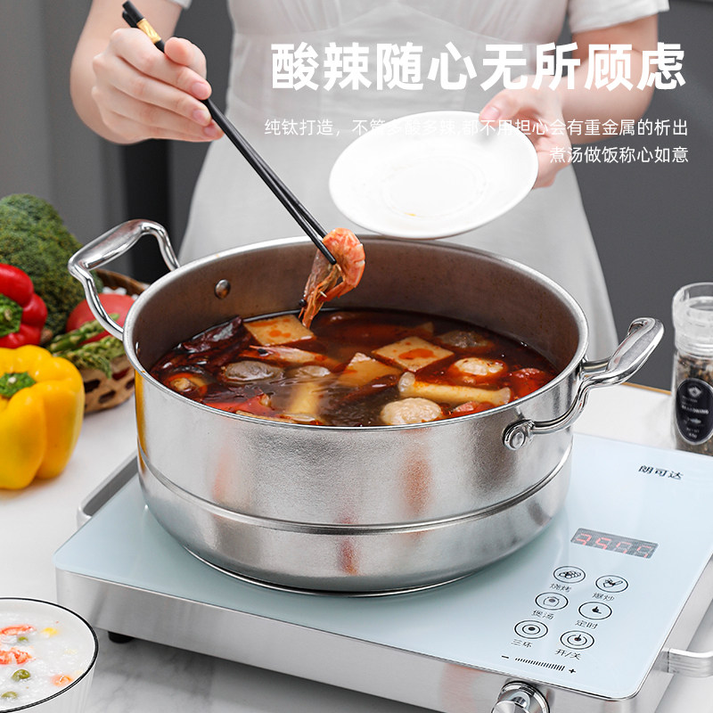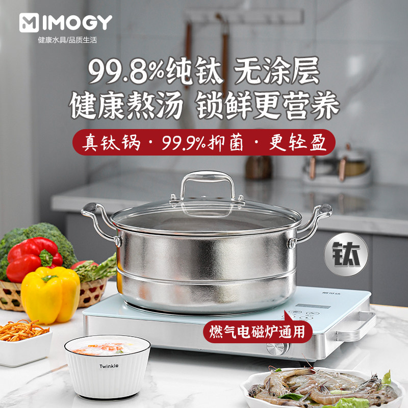 IMOGY艾曼格纯钛双耳锅家用炖锅汤锅煲汤锅电磁炉煮锅无涂层