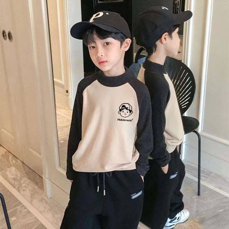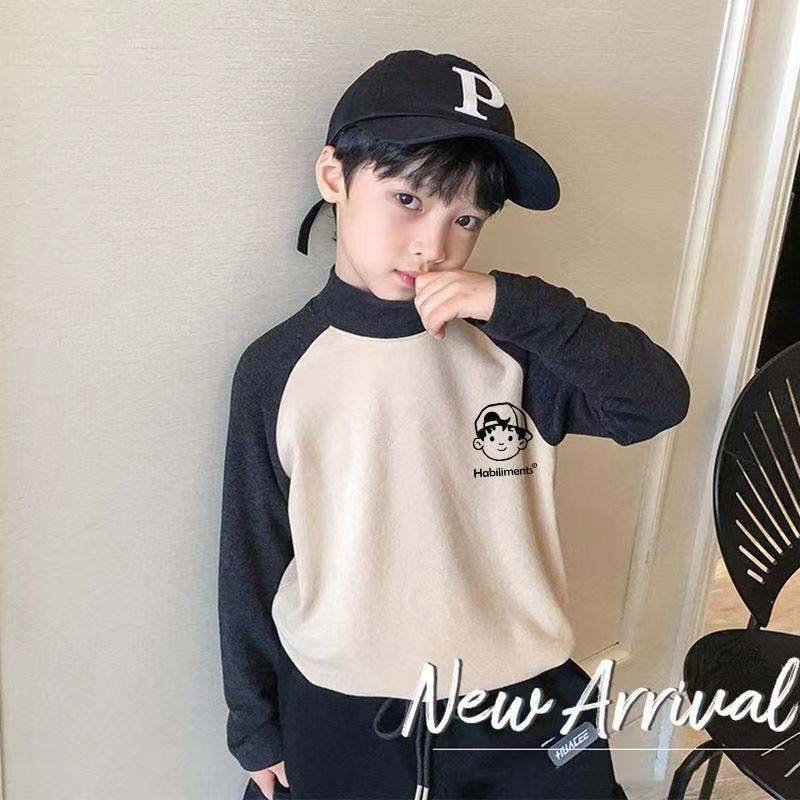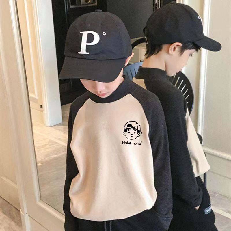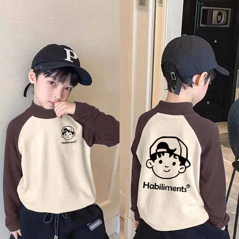 德绒儿童打底衫男童秋冬装新款保暖半高领T恤长袖中大童撞色上衣