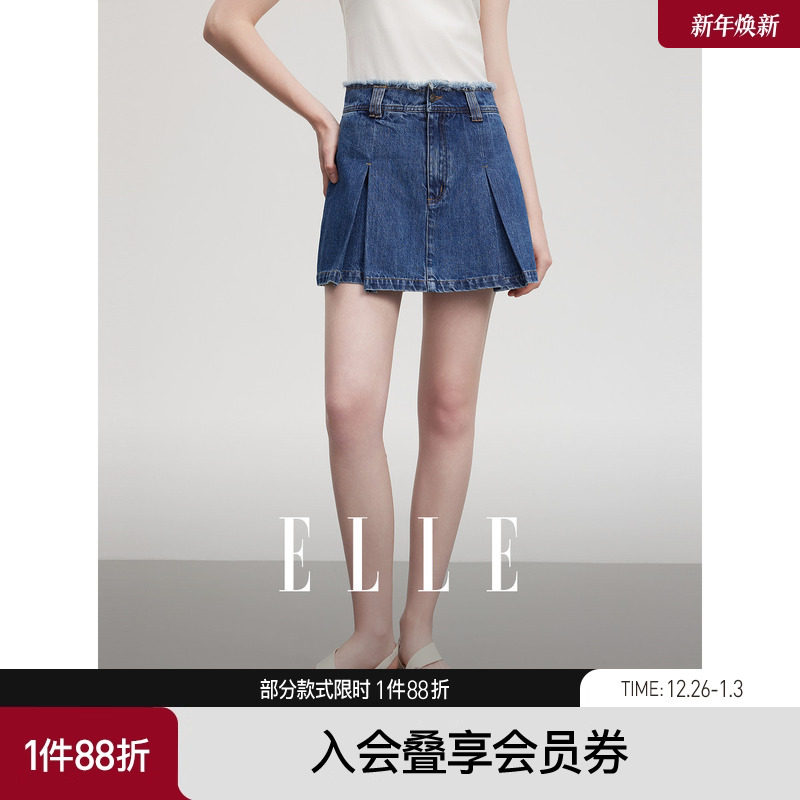 ELLE法式设计感百褶a字裙裤女2025夏新款显瘦小个子摩登休闲短裤