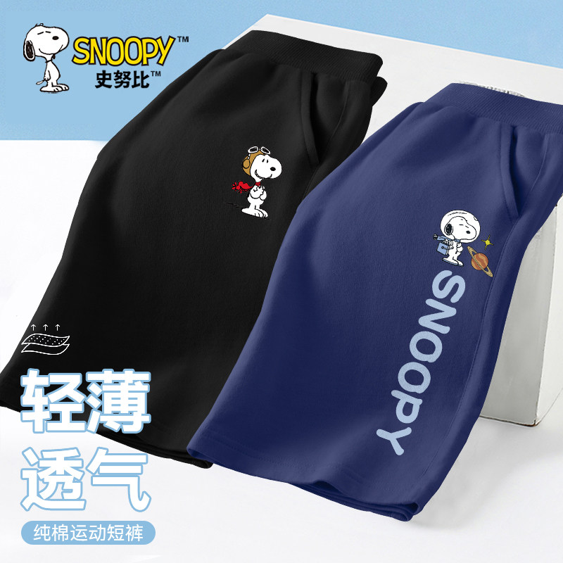 史努比儿童短裤2025新款男孩夏装男大童黑色运动裤男童纯棉五分裤