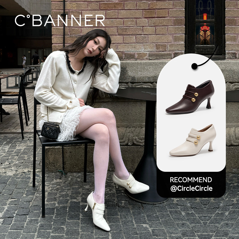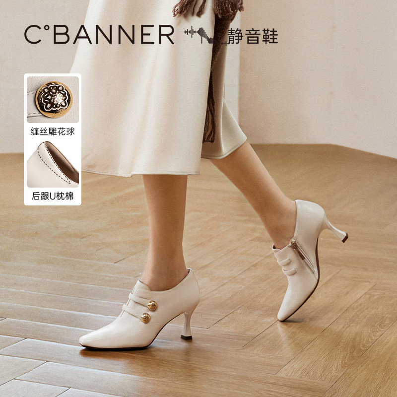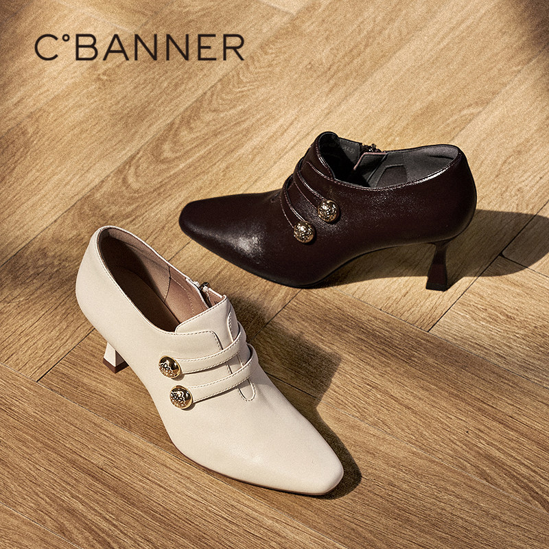 千百度羊皮细高跟踝靴女2025秋冬新款通勤小短靴尖头气质时装靴