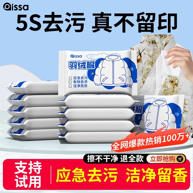 羽绒服专用免洗清洁湿巾清洗剂干洗强力去污衣物去渍湿纸巾家用