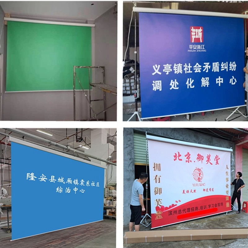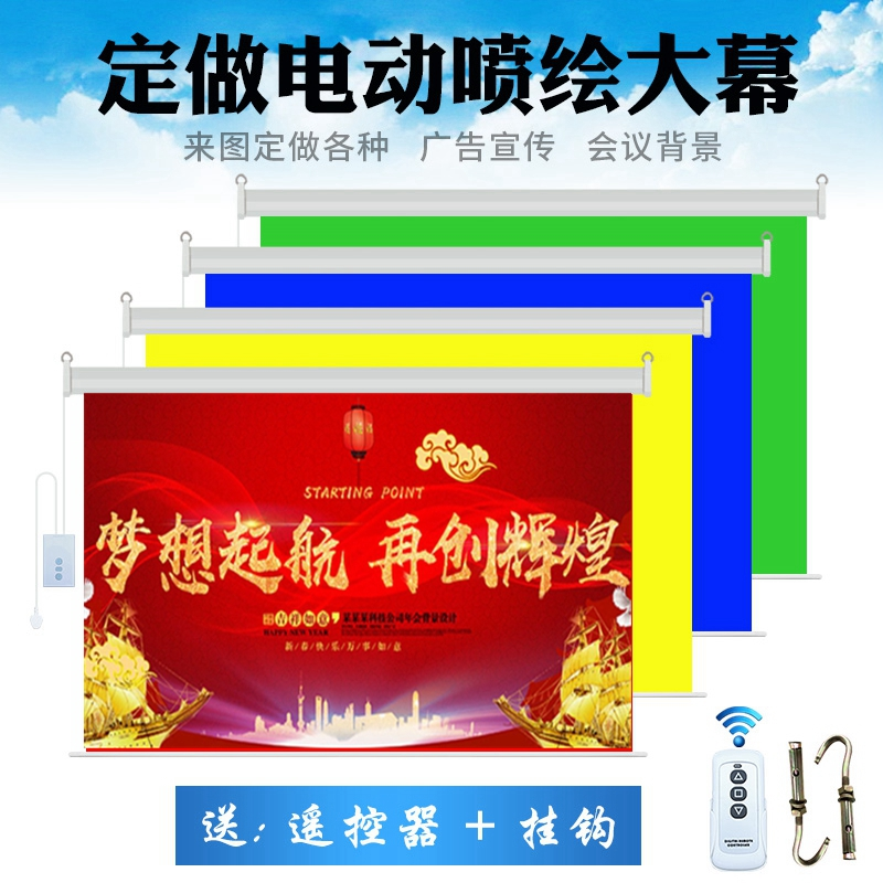 定做电动喷绘党旗国旗会议背景广告logo直播抠图绿蓝遥控升降幕布订制背景画面logo吊顶安装绿幕网红直播幕