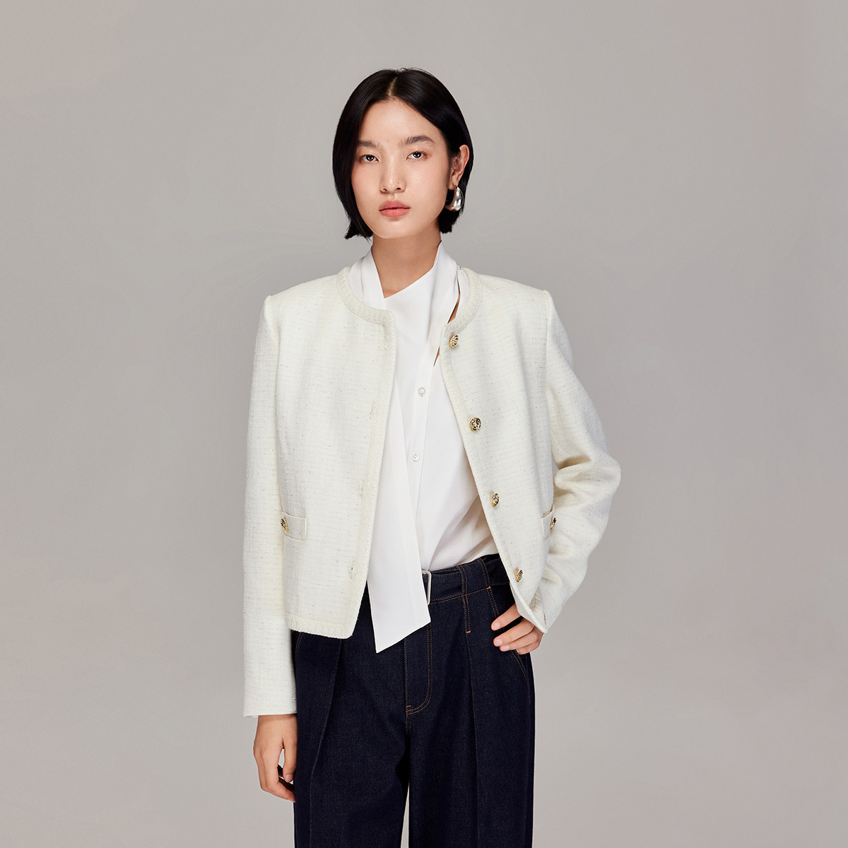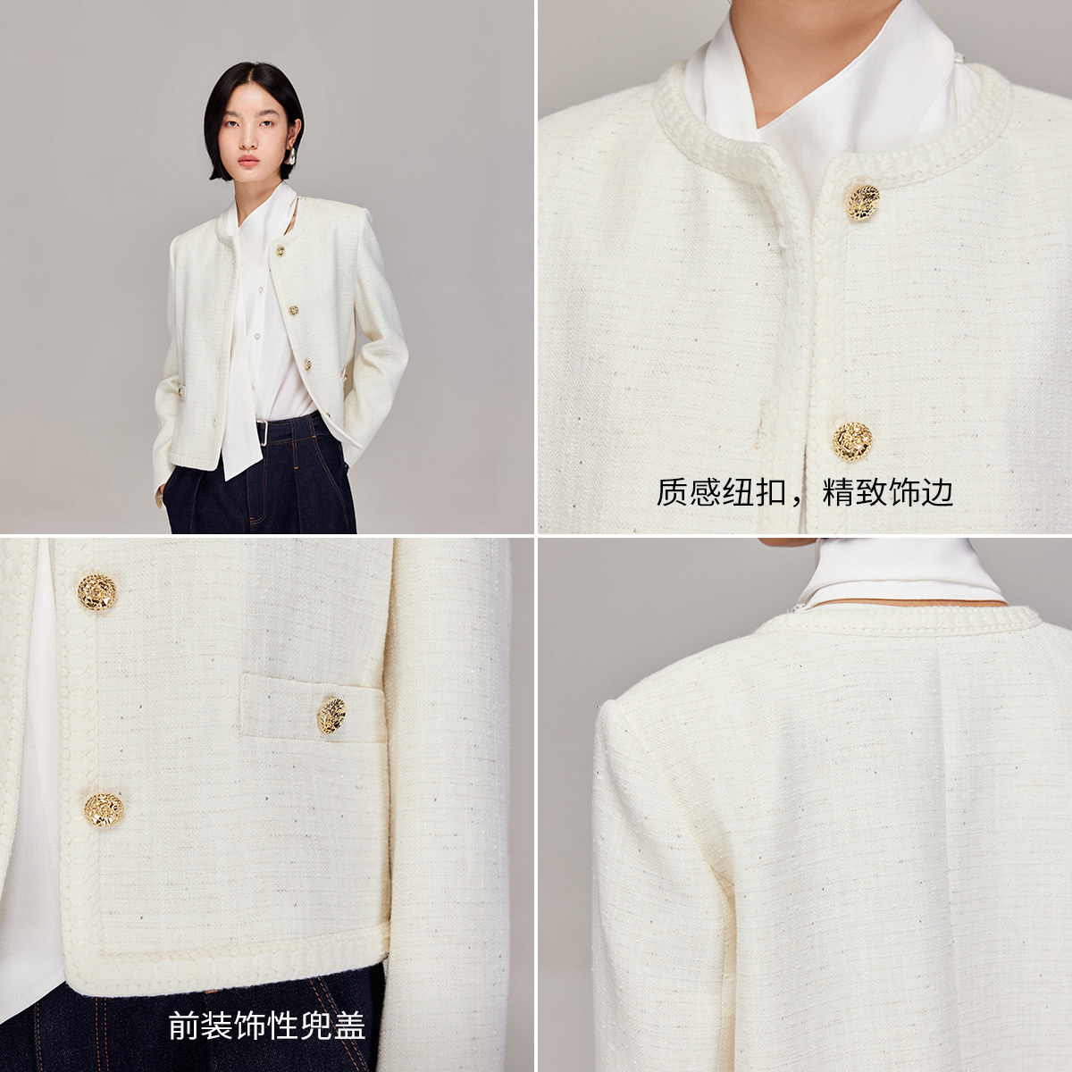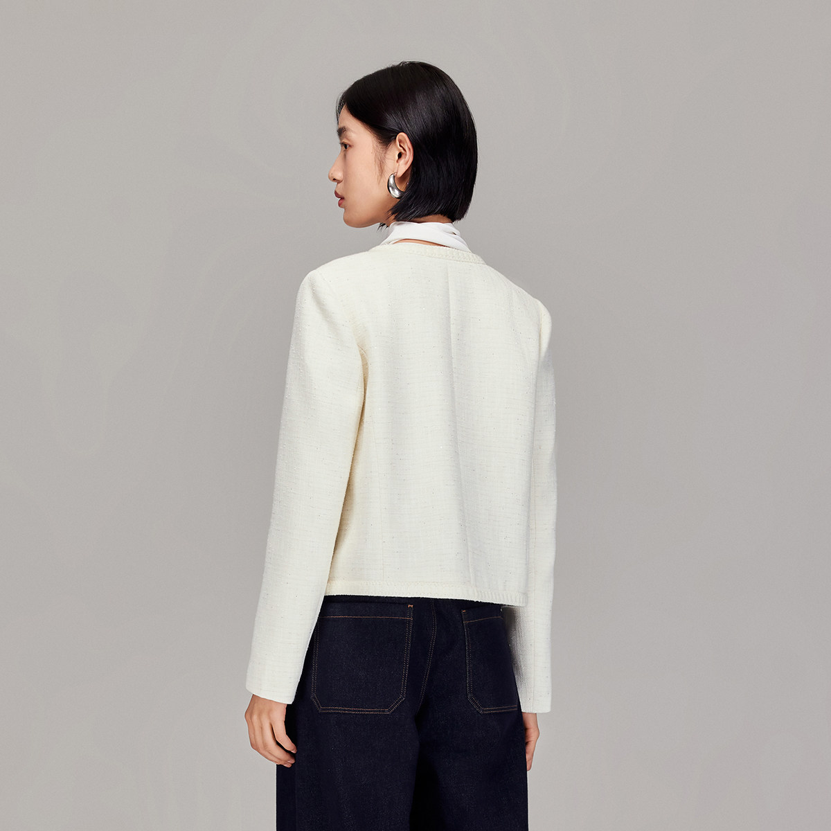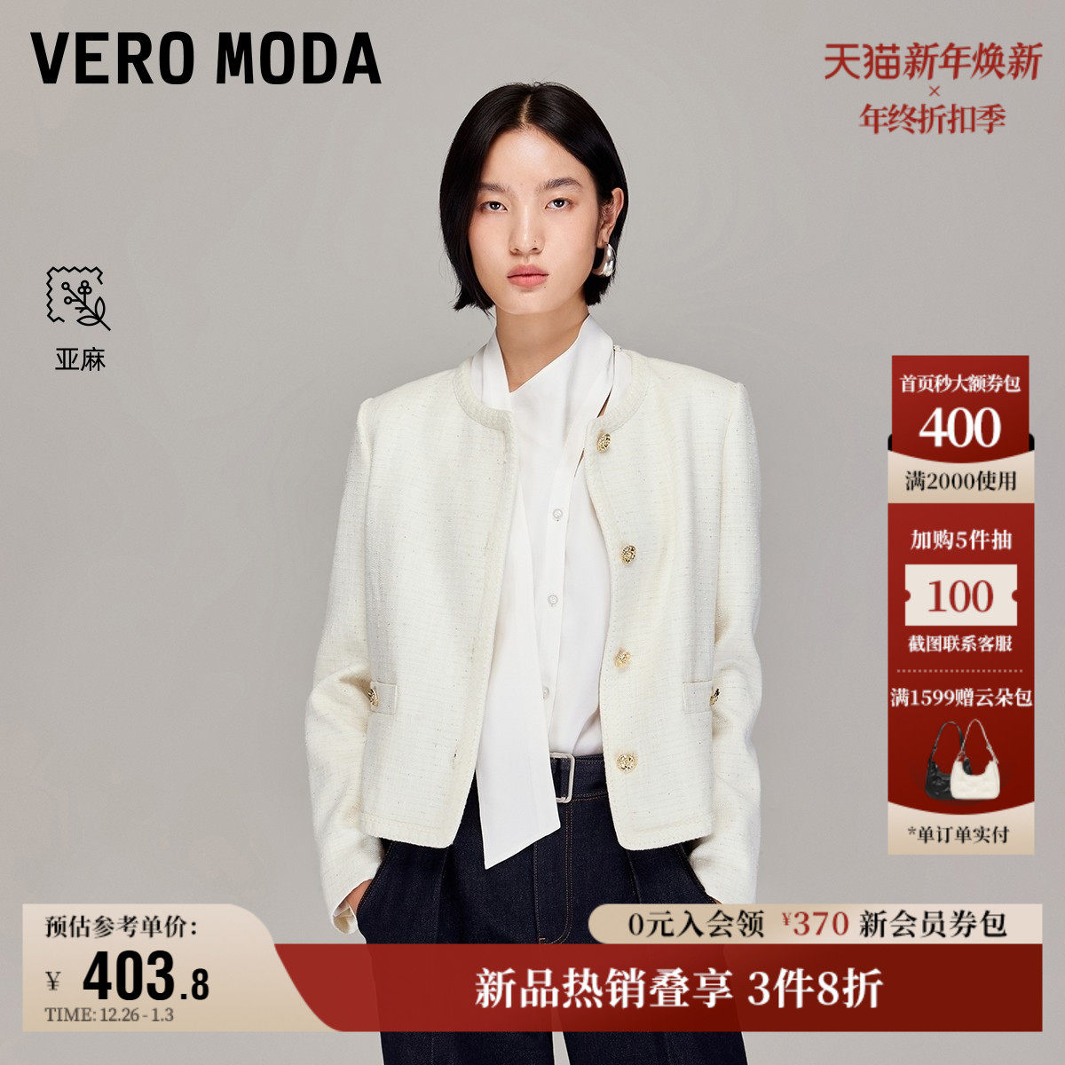 Vero Moda奥莱短外套女2025秋冬新款含亚麻小香风亮片上衣气质