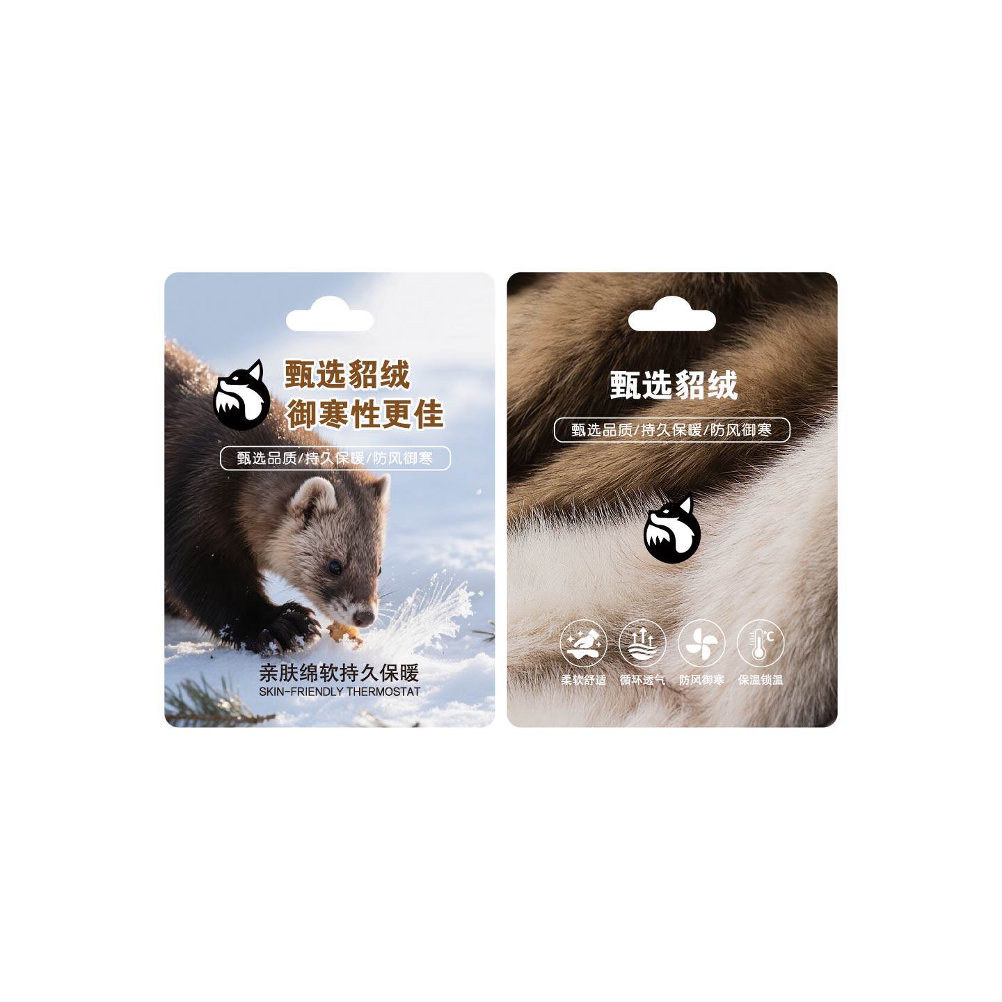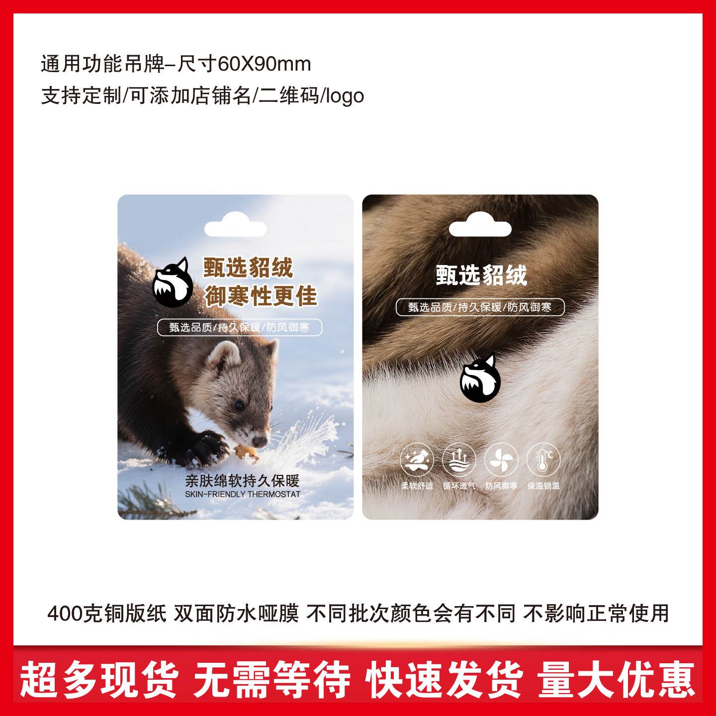 甄选貂绒御寒保暖特种功能面料吊牌定制男女服装包邮通用现货设计