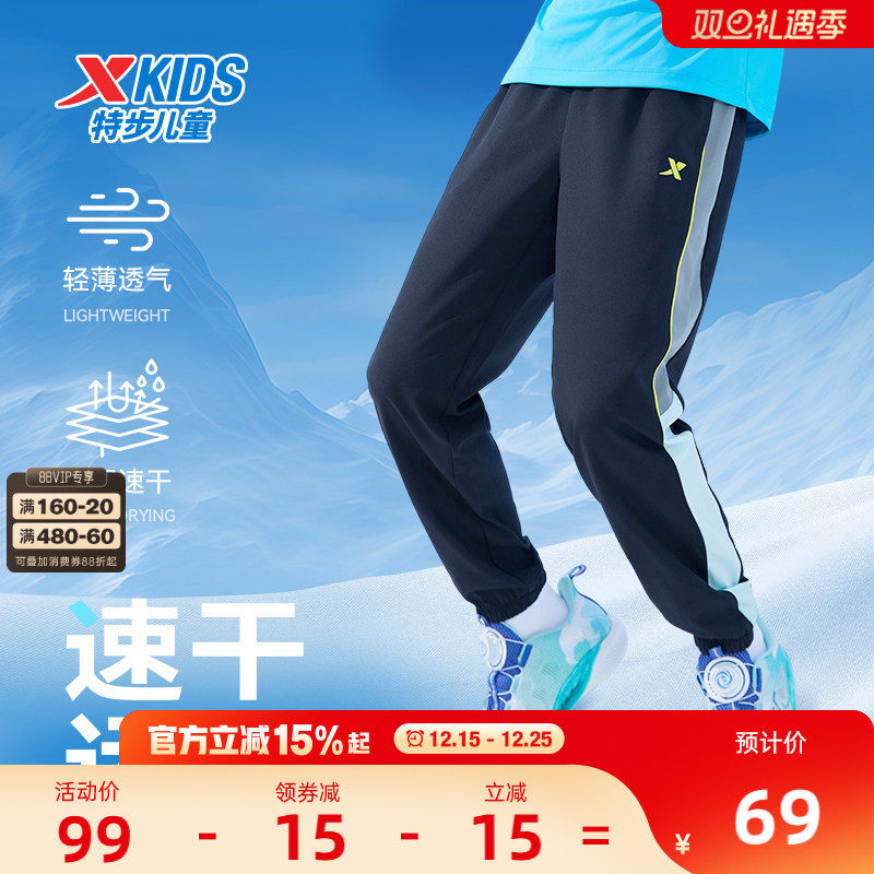 特步童装儿童速干运动裤男童裤子2025夏季新款中大童防蚊长裤夏装
