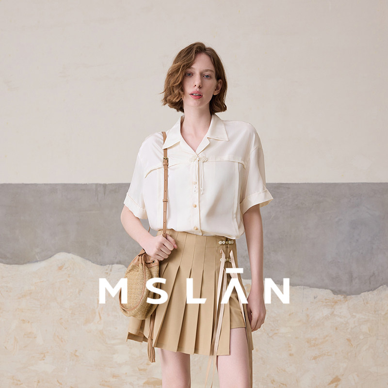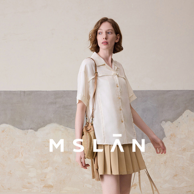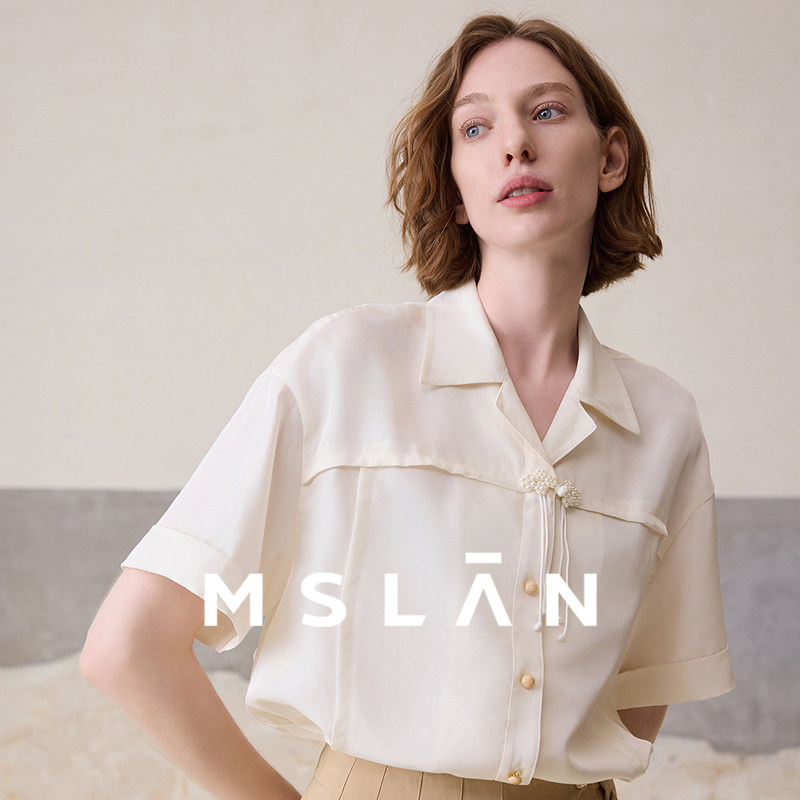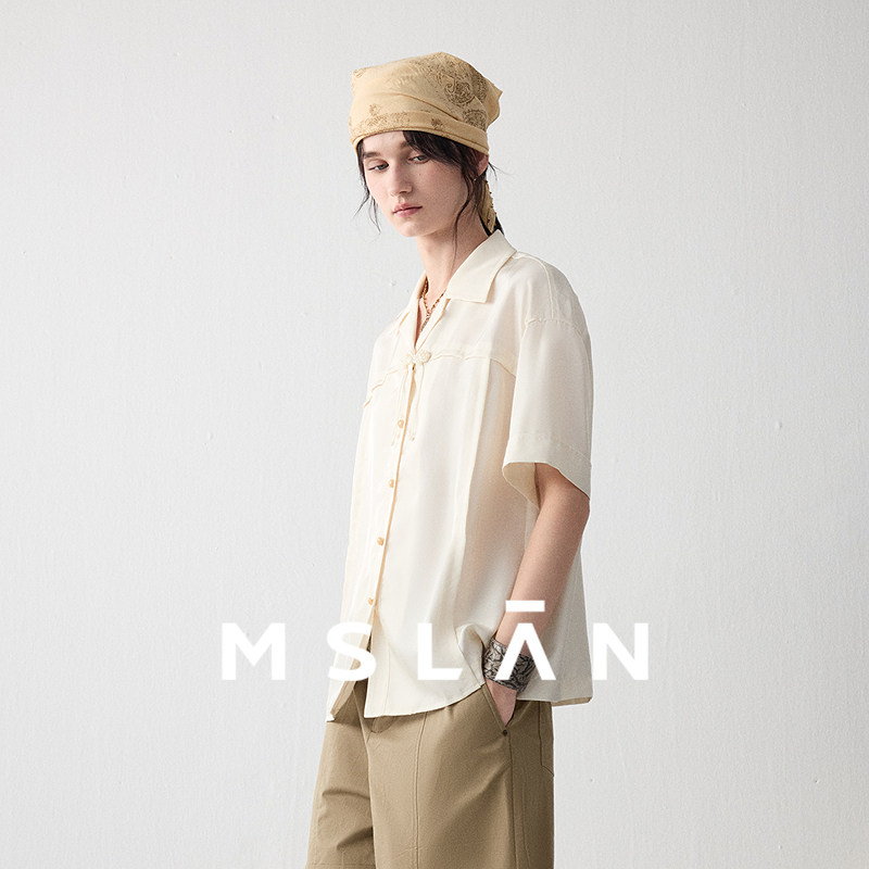 【新中式衬衫】MSLAN春季短袖白色国风盘扣装饰上衣MFBN1406