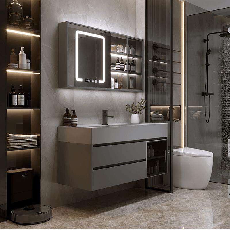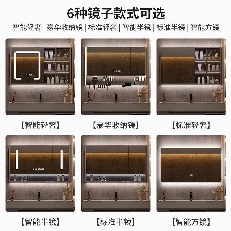 微晶石一体盆浴室柜洗脸盆柜组合洗手卫生间洗漱台面纳米岩石实木饰品