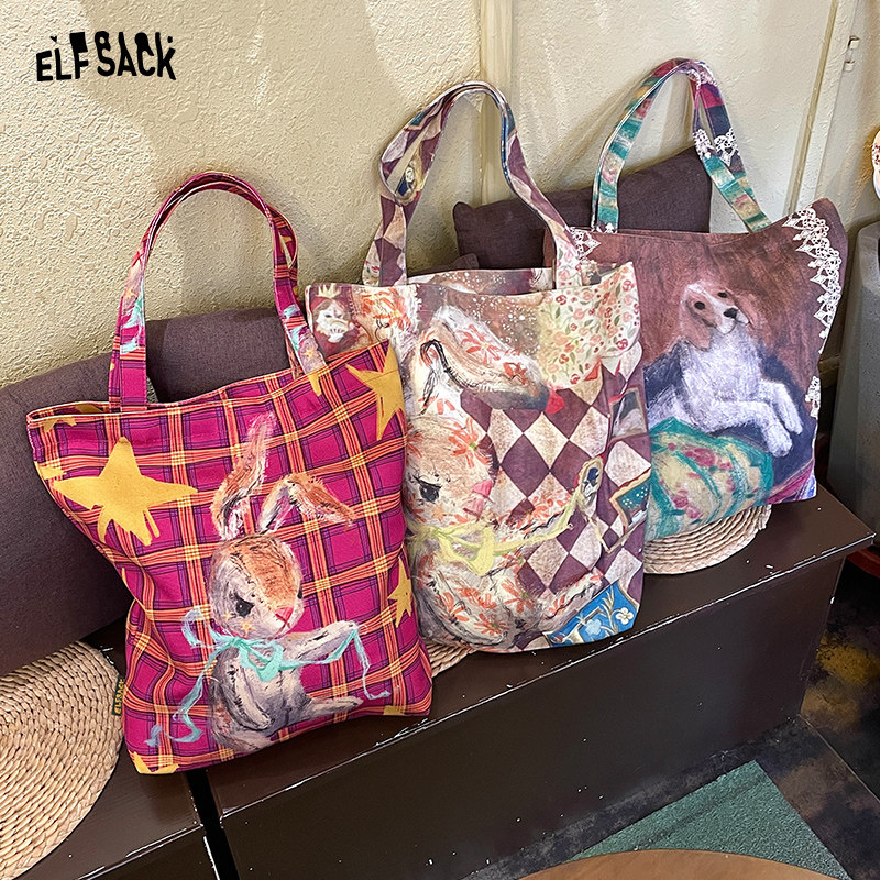 妖精的口袋原创萌宠满印单肩包2025年新款设计感大容量斜挎手提包