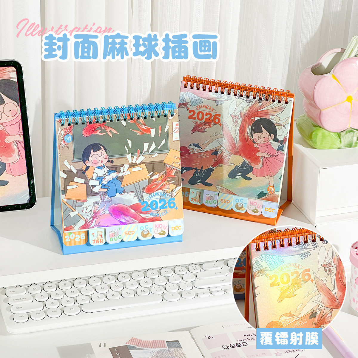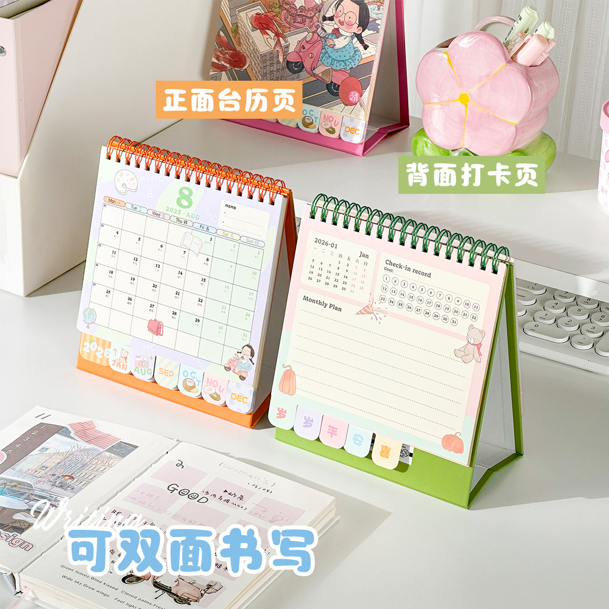 三年二班×好好历 台历2026年新款原创插画日历本办公室创意桌面摆件自律打卡计划本倒计时日程备忘录月历