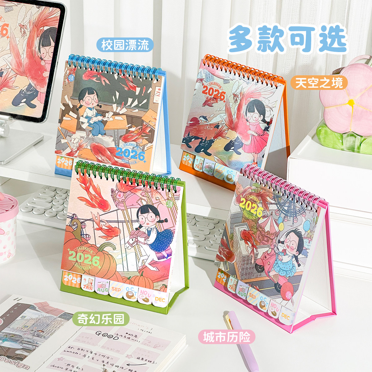 季左2026年韩式台历日历马年新款定制订制小卡月历桌面摆件网红卡通高颜值办公台历卡通可爱