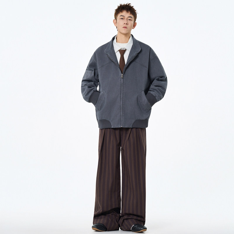 Wassup Shark美式牛仔外套男春秋季复古工装休闲夹克百搭翻领上衣