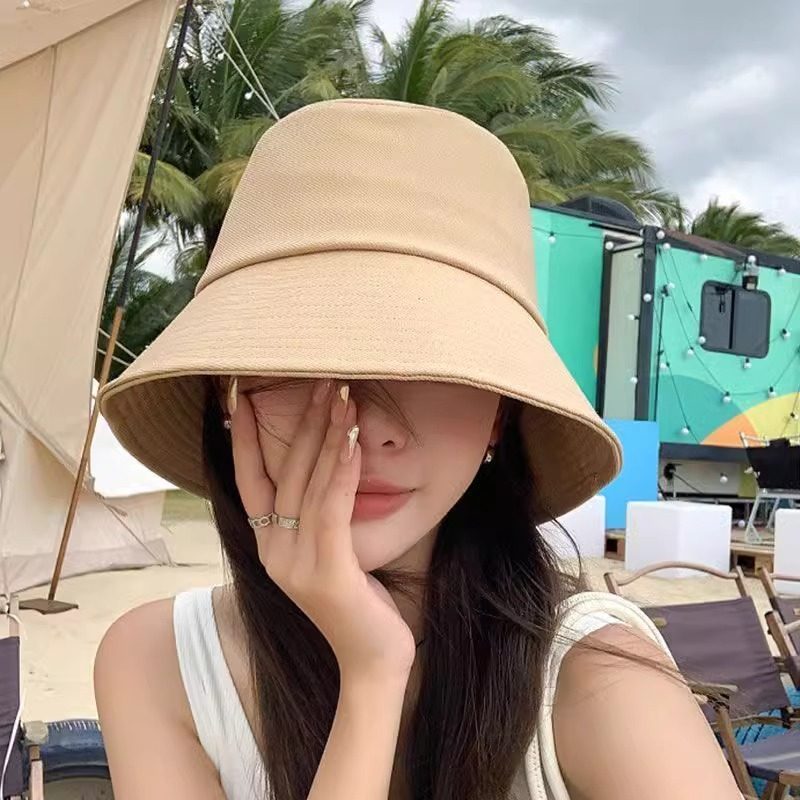 显脸小渔夫帽子女春夏季遮脸黑色防晒盆帽大头围大帽檐白色圆脸