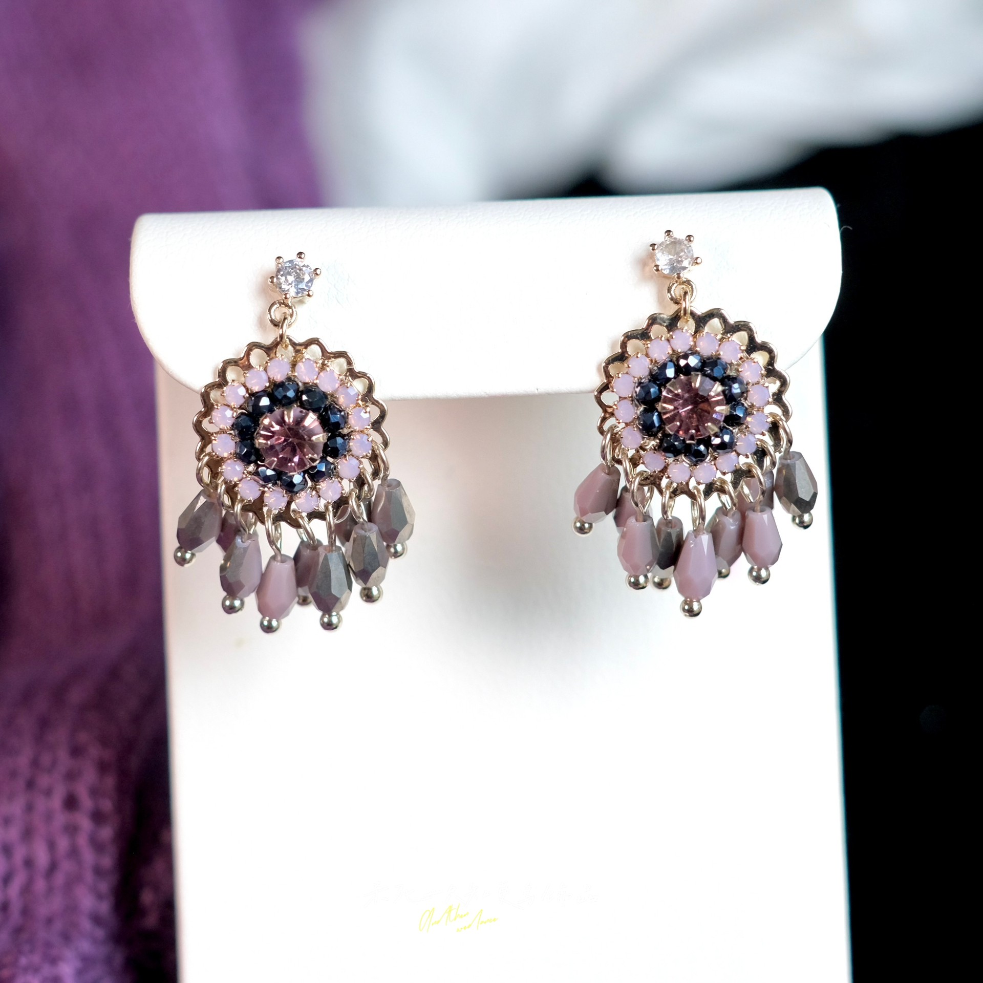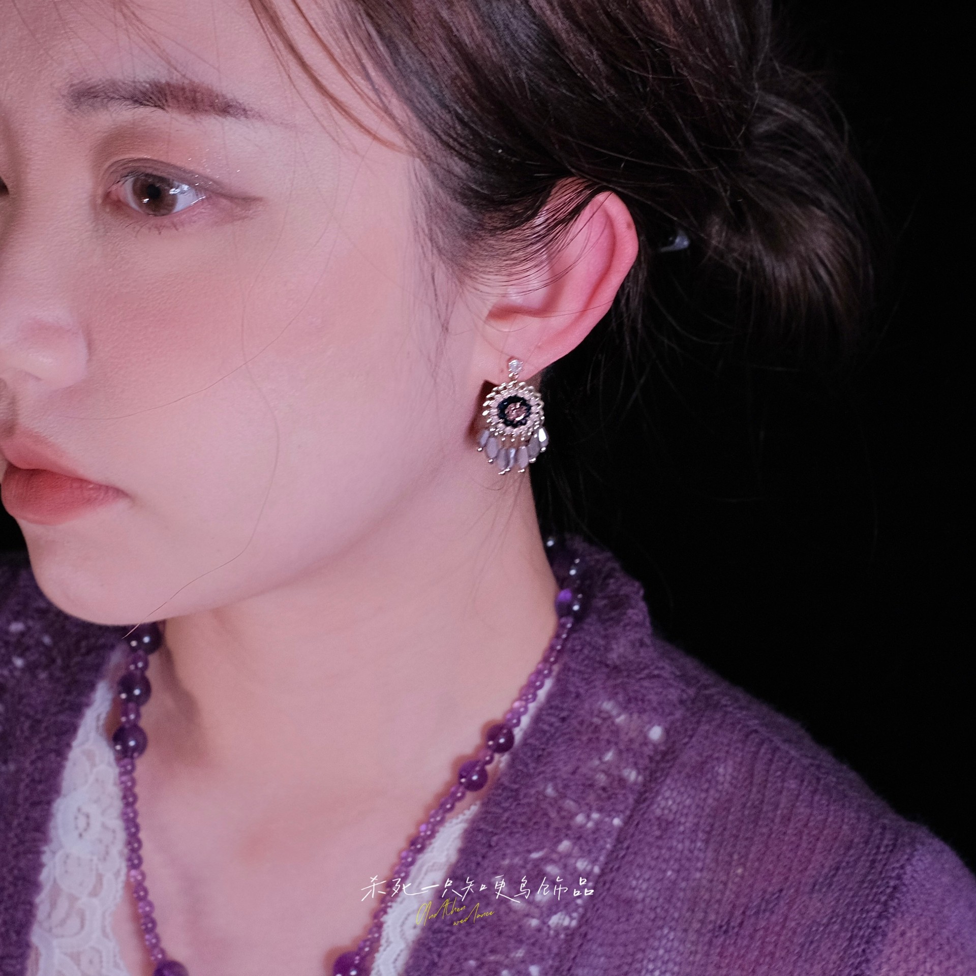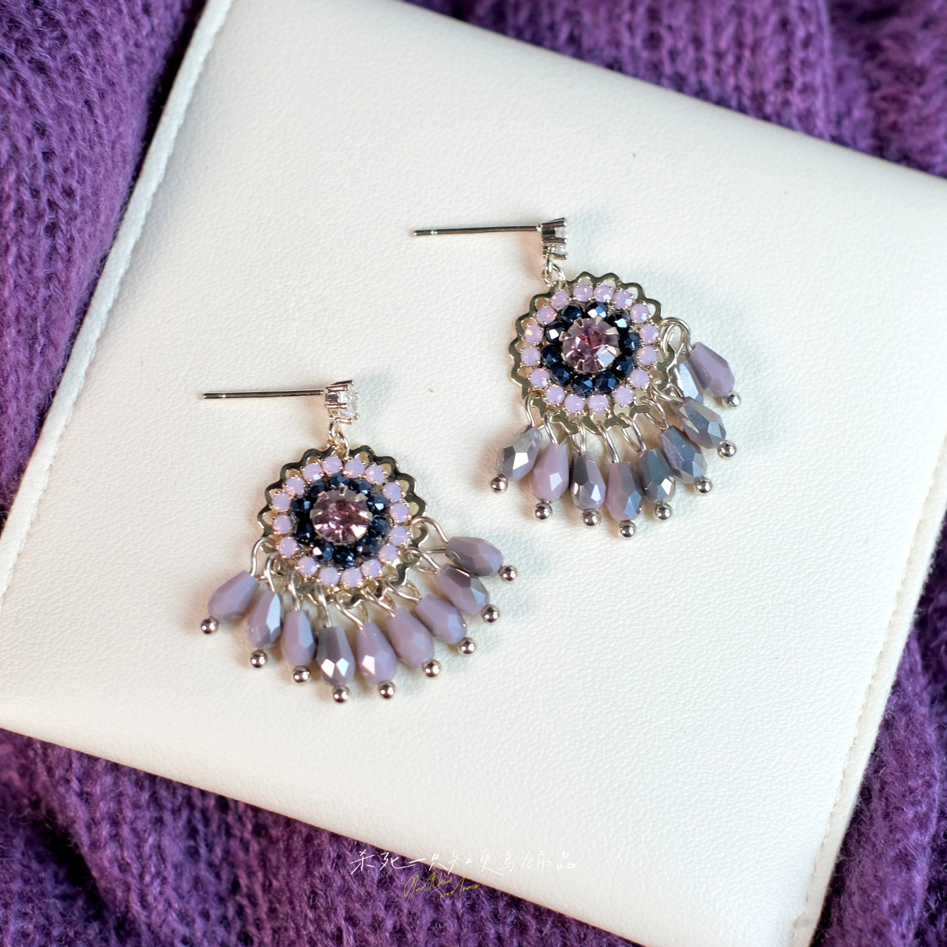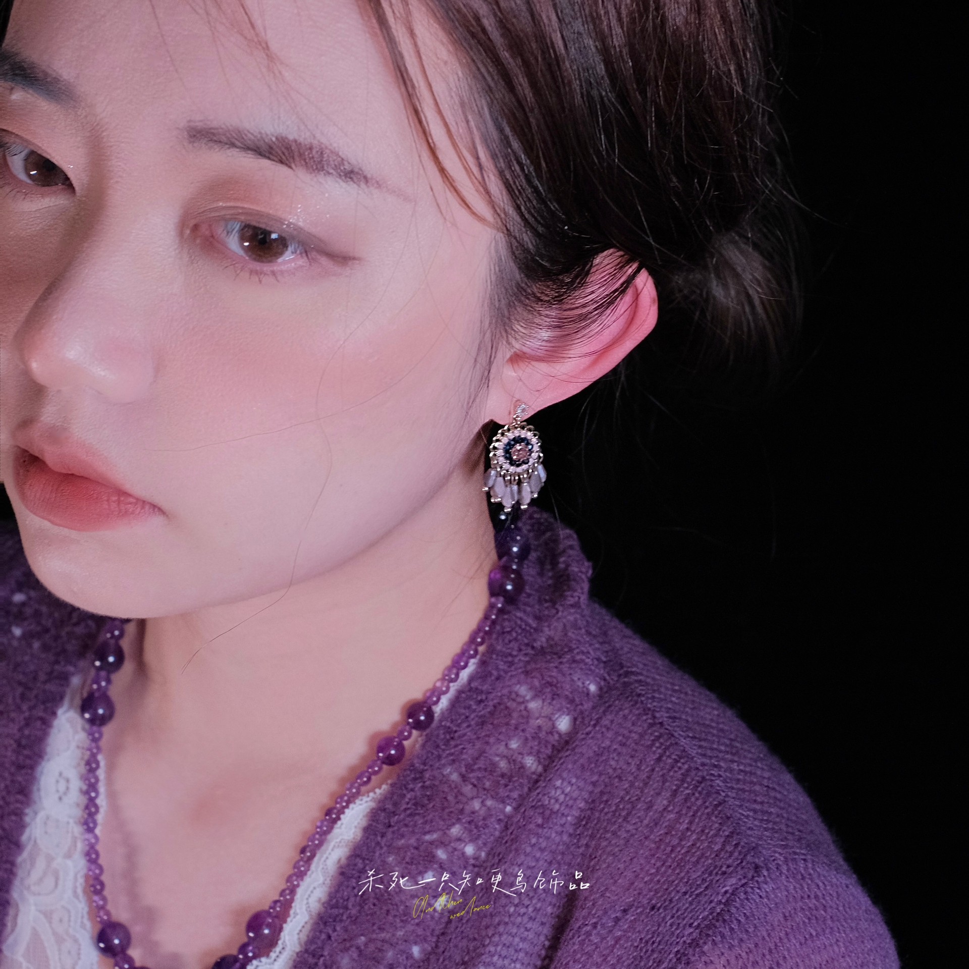 《流浪诗人》小众波西米亚民族风串珠紫色水晶流苏耳环耳饰女耳夹
